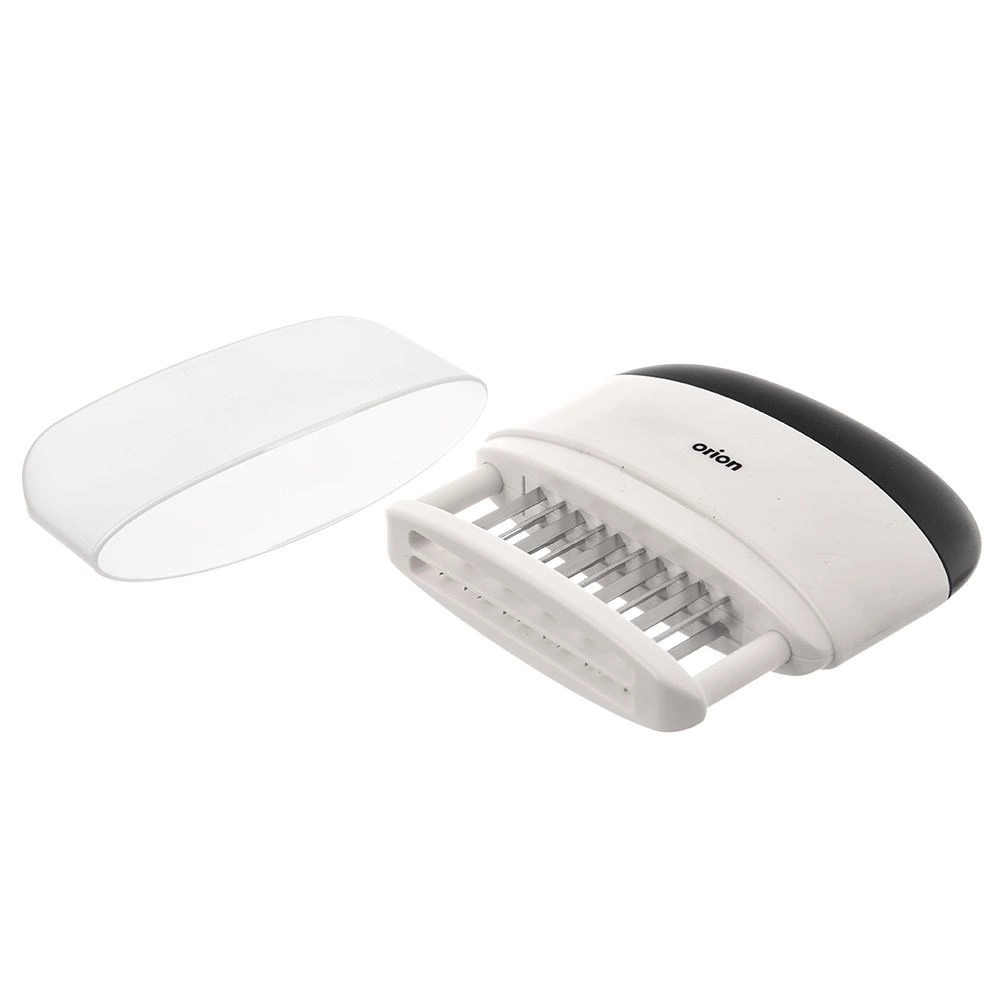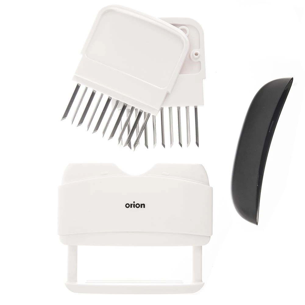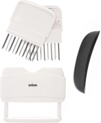 Kompaktní kuchyňská pomůcka má ergonomické držadlo pro pohodlný úchop a odnímatelný bezpečnostní kryt pro bezpečné uložení. Tělo je z kvalitního plastu, jehly z nerezové oceli vhodné pro kontakt s potravinami. Stačí přiložit na maso a zatlačit – rychlé, čisté a efektivní.