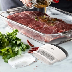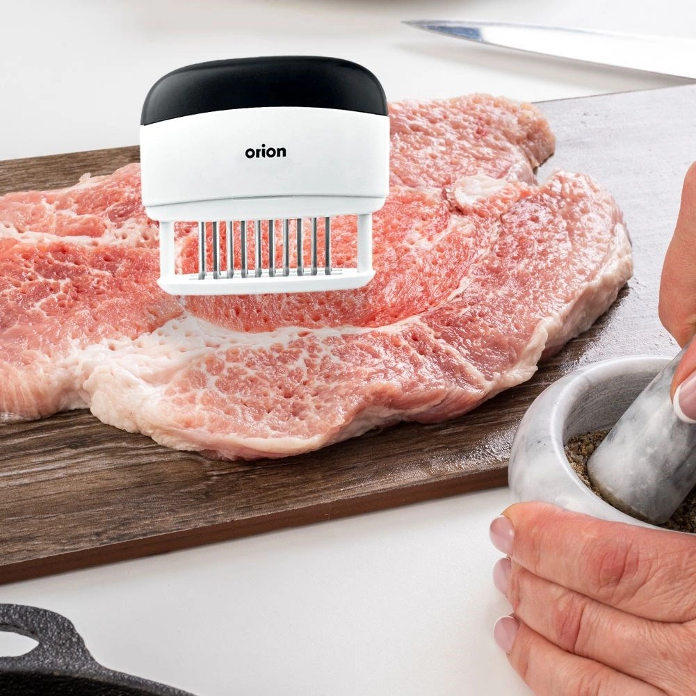 Usnadněte si přípravu šťavnatých steaků, řízků a pečení. Tento vpichovač masa s 20 nerezovými jehlami propichuje svalová vlákna do hloubky, čímž zkracuje dobu tepelné úpravy, zjemňuje strukturu a umožňuje, aby marináda pronikla rovnoměrně dovnitř. Výsledkem je plnější chuť a větší šťavnatost.