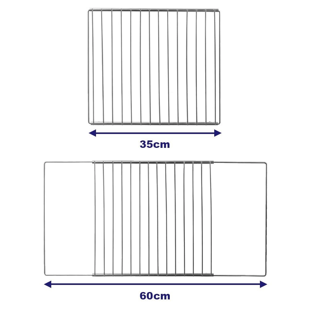 Rozšiřitelná konstrukce 35–60 cm se šroubovým zajištěním umožní přesně přizpůsobit rošt šířce vaší trouby.