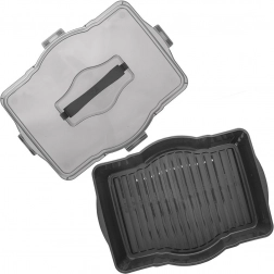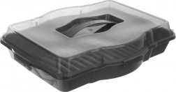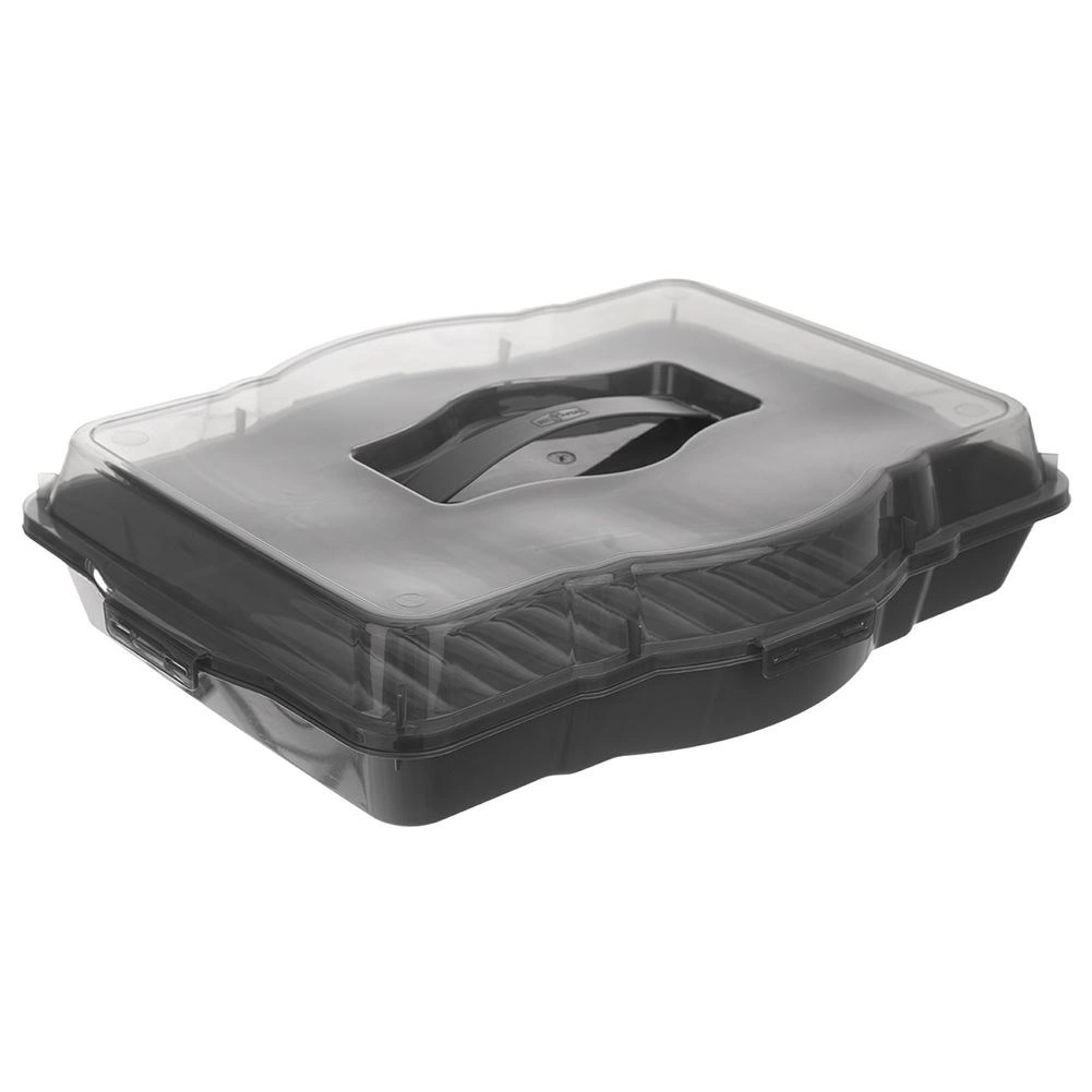 Velkoobjemový box pro bezpečné přenášení a skladování jídla doma, na návštěvě i na zahradní párty. Průhledné víko se zabudovaným madlem umožní snadné a jisté nošení, čtyři pevné klipsy zajistí těsné uzavření a ochranu obsahu před vysycháním i hmyzem. Robustní provedení v šedé barvě se hodí do každé kuchyně.