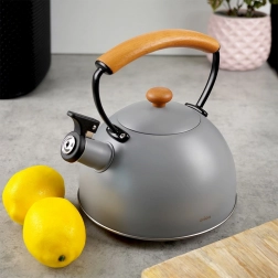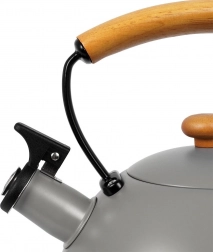 Luxusní nerezová konvice v šedém provedení s dřevěnými doplňky z kaučukovníku je ideální pro rychlé přivedení vody k varu na kávu, čaj i bylinky. Díky ergonomickému dřevěnému madlu a sklopné píšťalce je manipulace bezpečná a pohodlná. Konvice je energeticky úsporná a nerez nemění chuť vody.