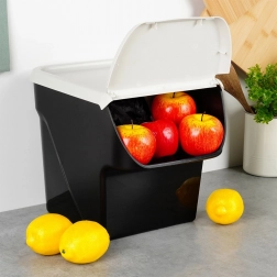 Udržte kuchyň i spíž dokonale zorganizované. Odolný úložný box s výklopnou přední klapkou usnadňuje rychlé doplnění i odebírání obsahu bez nutnosti sundávat celý kryt. Díky nadčasové kombinaci černé nádoby a světle šedého víka zapadne do každého interiéru.