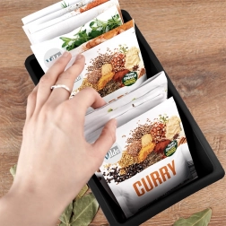 Dvě vnitřní přepážky vytvářejí tři samostatné oddíly. Sáčky stojí vzpřímeně, nepřekážejí si a vy vždy rychle sáhnete po správném koření.