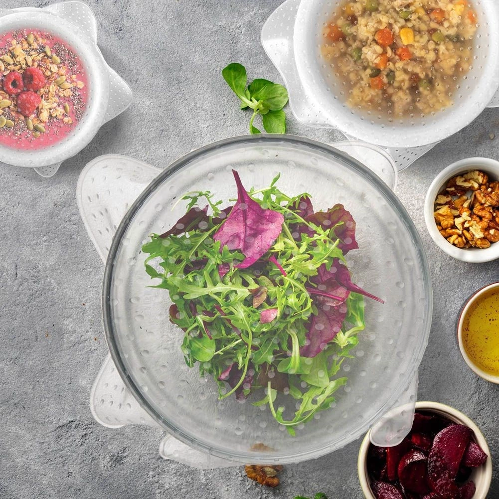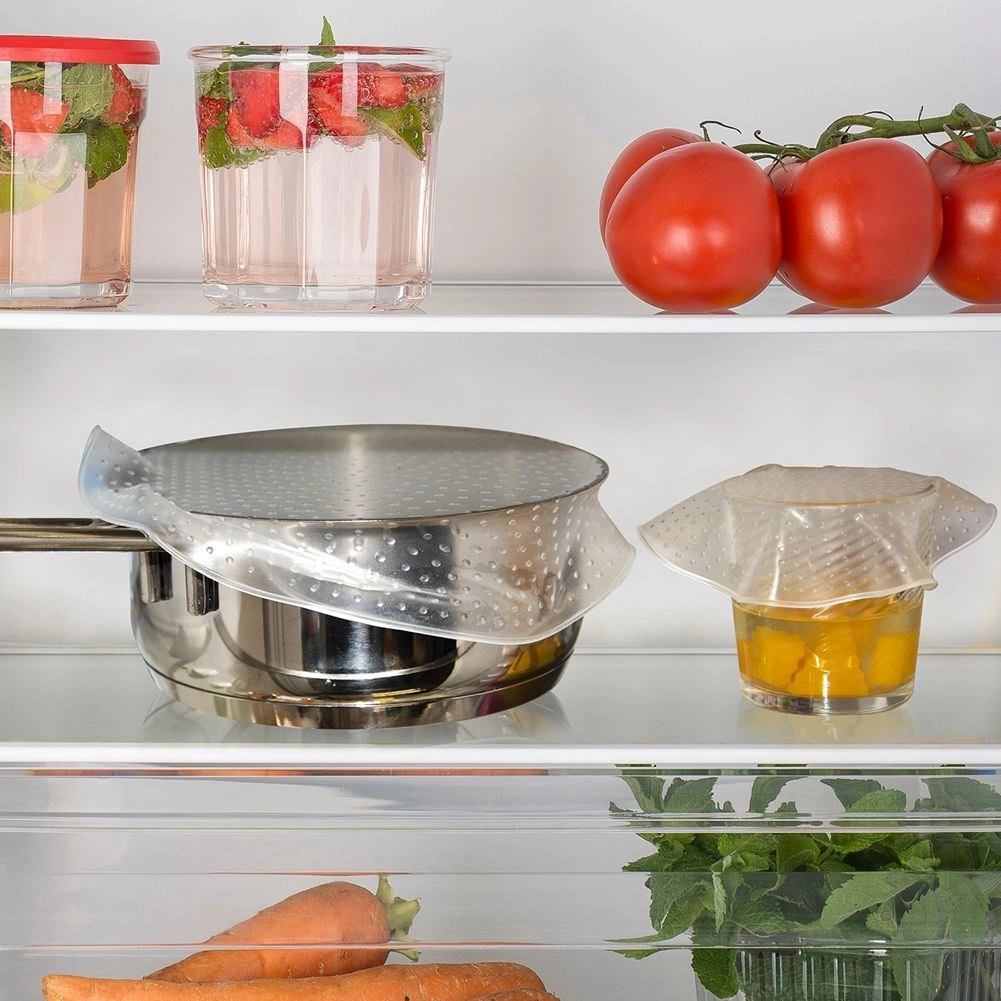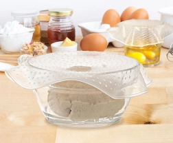 Elastický, průhledný silikon se snadno natáhne přes okraj a pomůže vytvořit těsné zakrytí proti osychání a pachům.