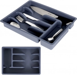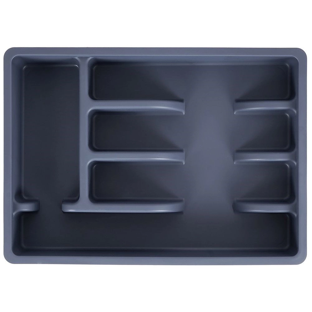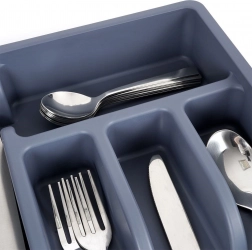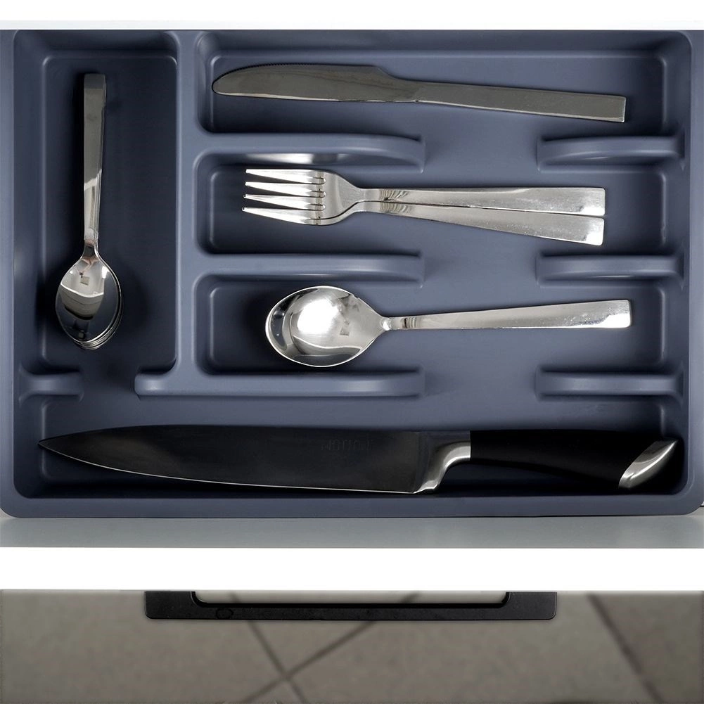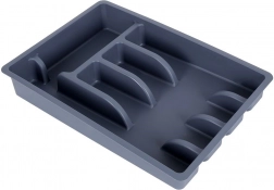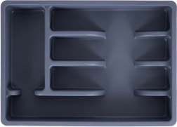 Organizér je vyroben z kvalitního, odolného plastu v moderní šedé barvě, takže se snadno udržuje a dlouho vydrží. Vnitřní přepážky brání posunu příborů při otevírání zásuvky, což zvyšuje pohodlí při každodenním používání.