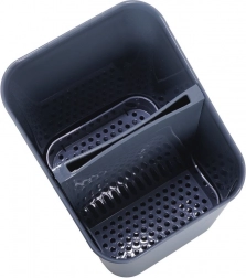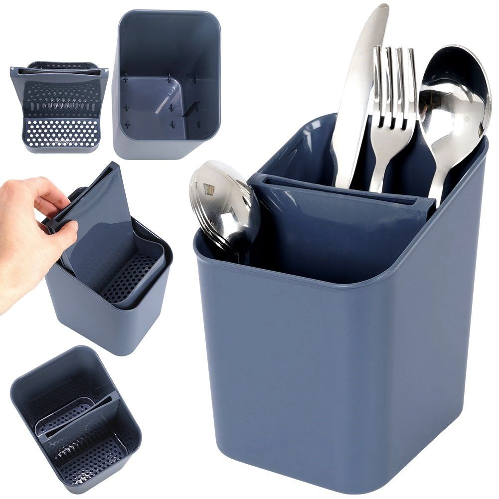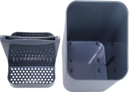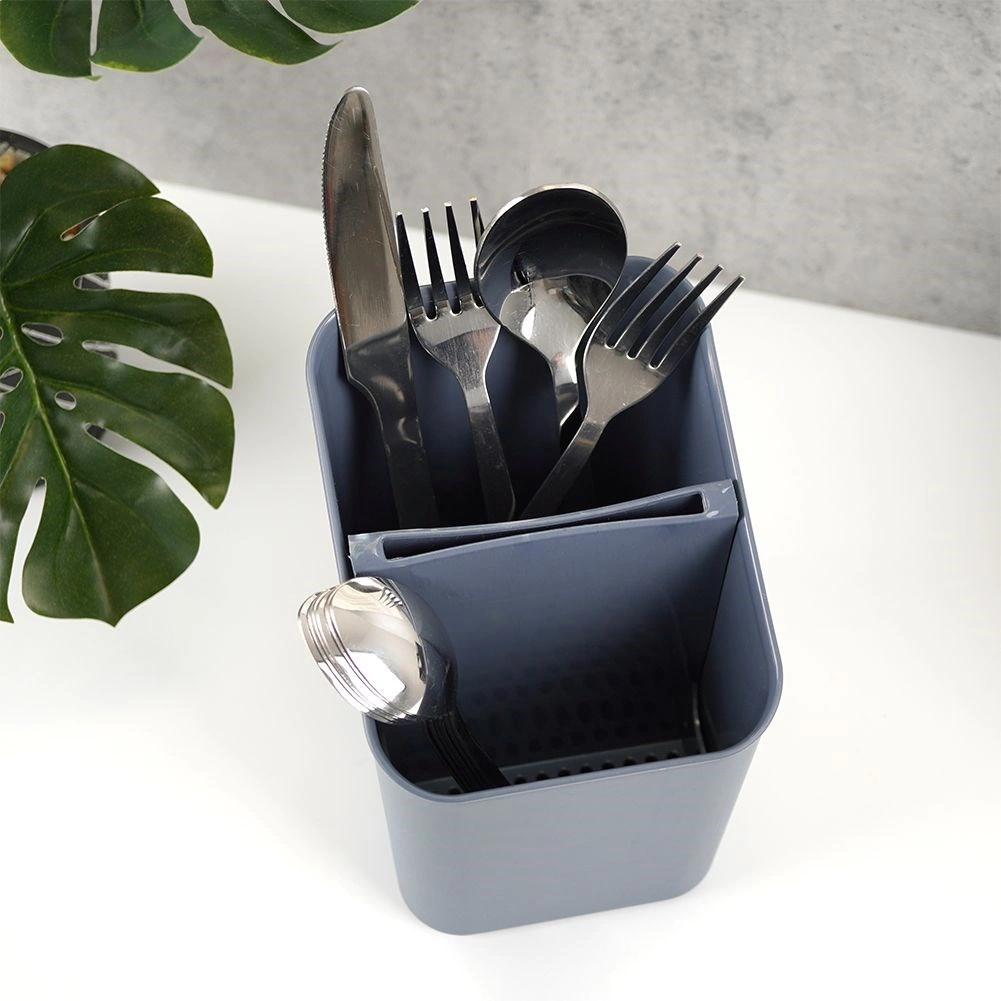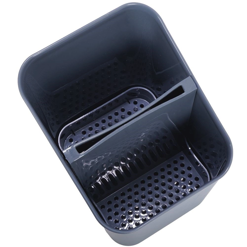 Udržujte kuchyňský dřez i pracovní plochu v pořádku. Tento šedý odkapávač na příbory kombinuje odolné provedení z kvalitního plastu s chytrým vnitřním uspořádáním. Vyjímatelný vložený separátor vytváří dvě praktické zóny a díky drenážním otvorům voda stéká pryč, takže příbory nestojí ve vodě a rychleji schnou.