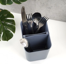 Rozměry 14 × 11 × 16 cm zajišťují kompaktní velikost na kuchyňskou linku i k dřezu. Odkapávač poslouží nejen pro sušení umytých příborů, ale také jako organizér na kuchyňské náčiní – lžíce, vidličky, nože či štětky na lahve budou vždy po ruce. Údržba je maximálně snadná, celý držák můžete mýt v myčce.