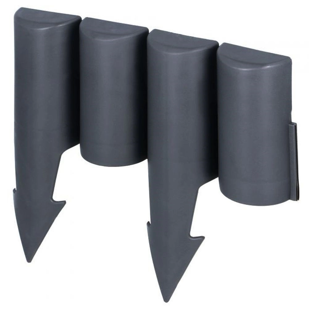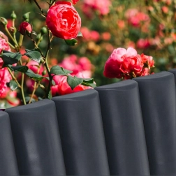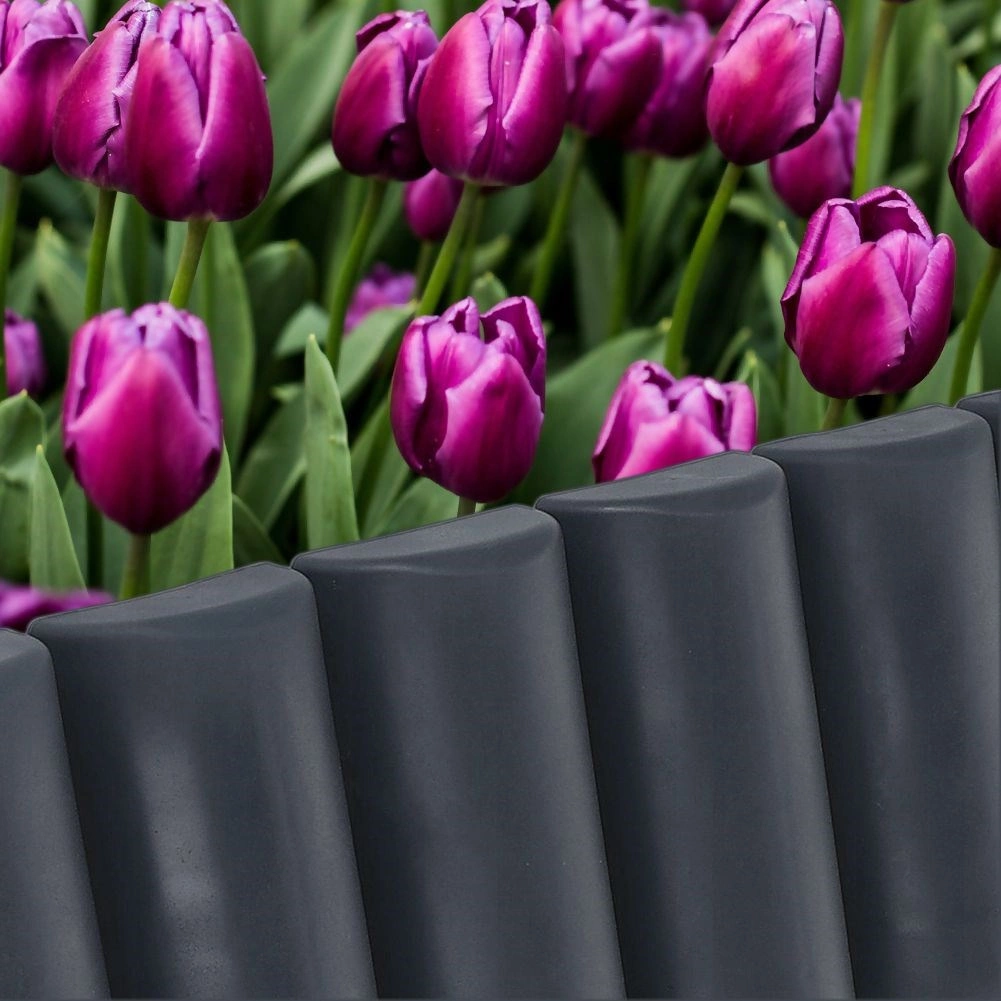 Elegantní tmavě šedé segmenty s oblým vrchem vytvářejí bezpečný a vkusný okraj kolem květin i trávníku, který zlepší vzhled celé zahrady.
