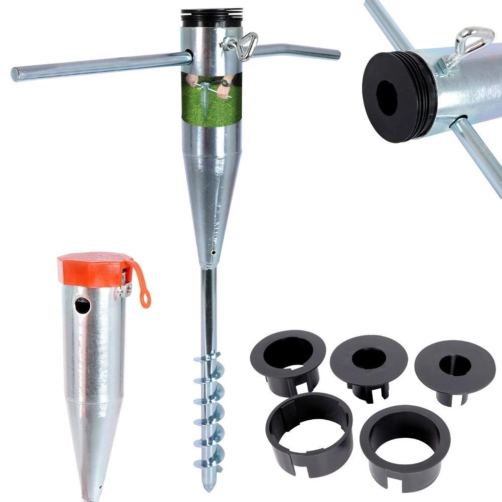 Šroubovací stojan na slunečník s délkou 57 cm je spolehlivé řešení pro rychlou a pevnou instalaci v trávníku, zahradní půdě či písku. Vrtákový hrot a boční madla umožňují snadné zašroubování, zatímco upínací šroub bezpečně dotáhne tyč slunečníku. Galvanizovaný kov zaručuje dlouhou životnost a odolnost vůči korozi.