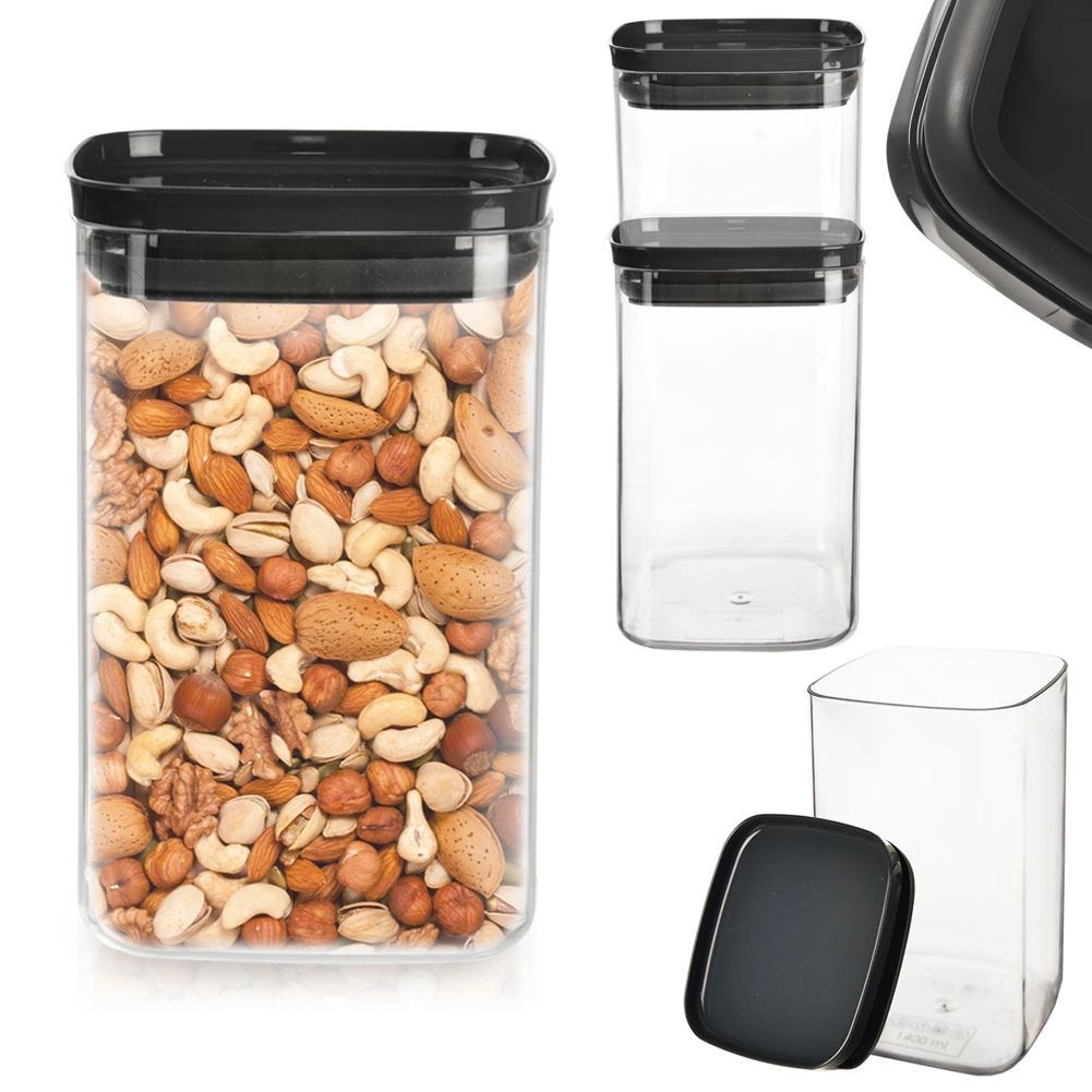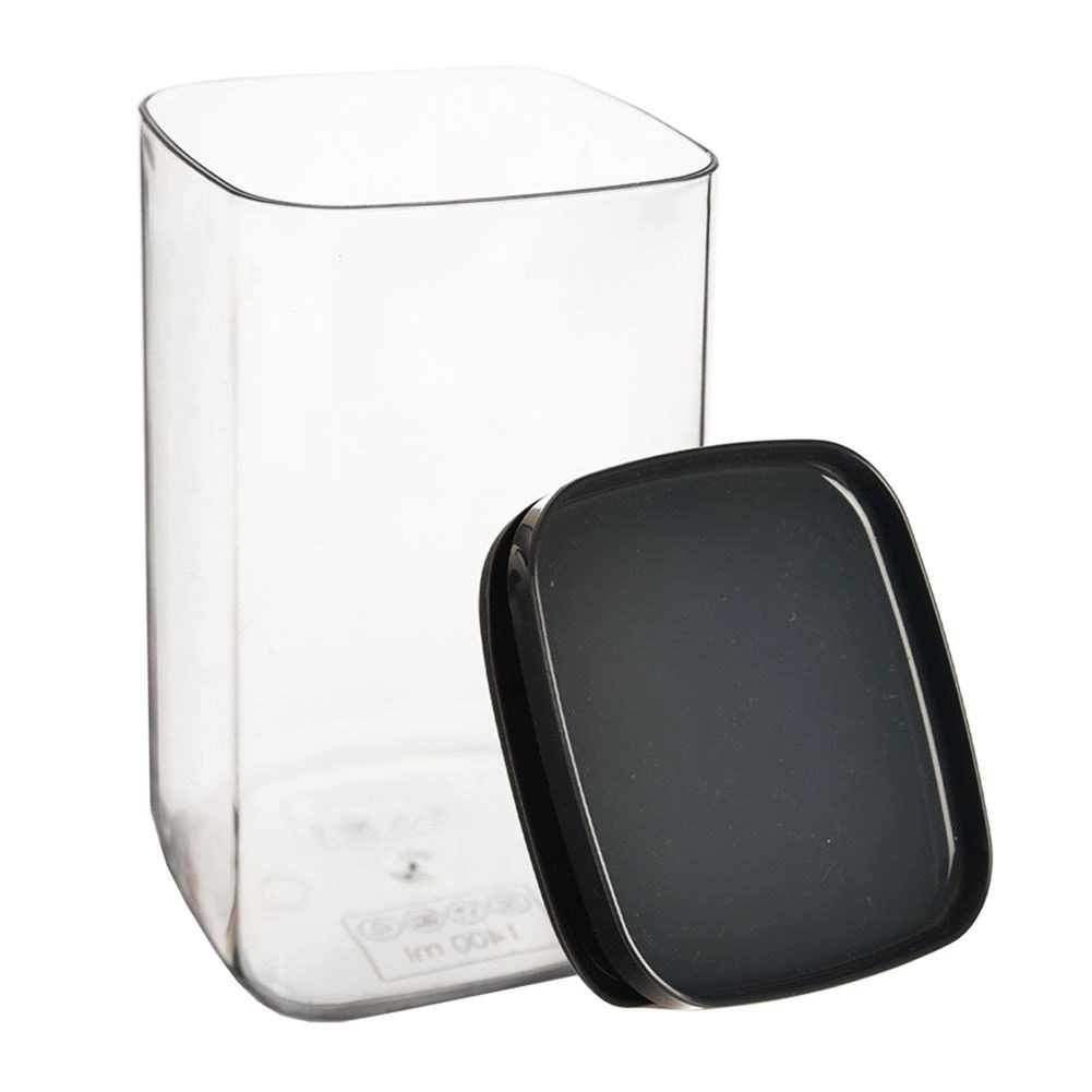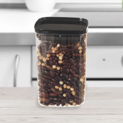 Černé víko se silikonovým těsněním spolehlivě uzavře nádobu, chrání obsah před vlhkostí a zachová aroma i křupavost potravin.