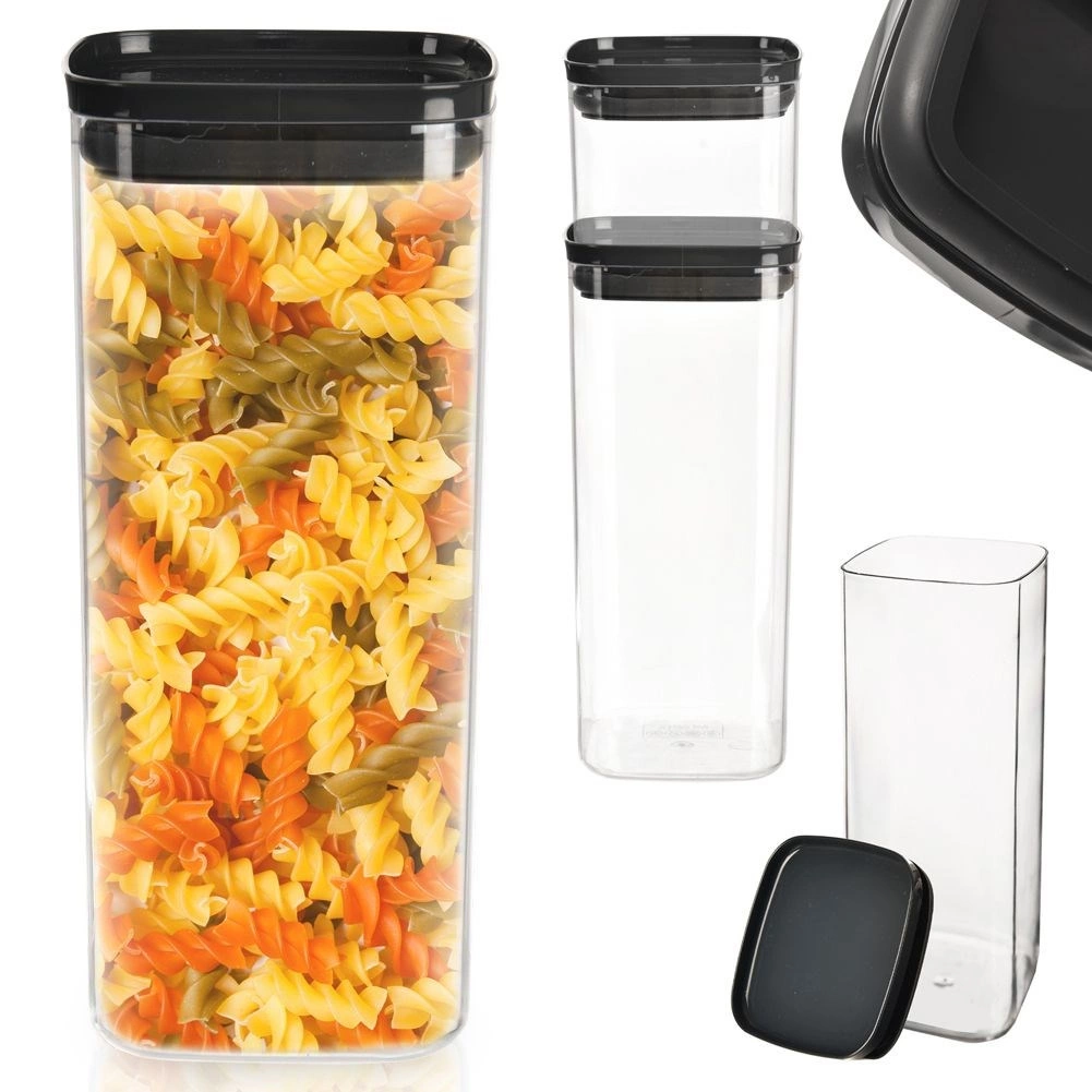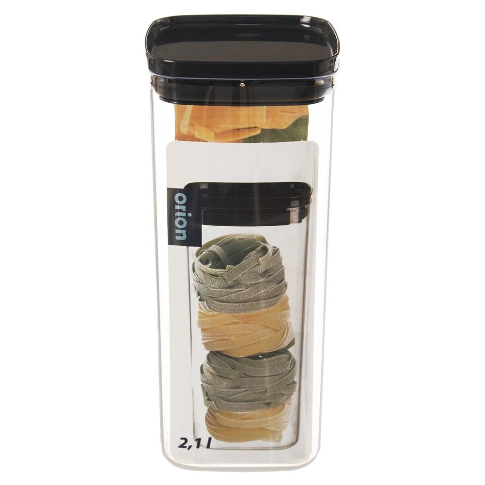 Praktická čtvercová nádoba o objemu 2,1 l na suché i sypké potraviny s těsnicím víkem. Díky průhlednému tělu máte obsah vždy pod kontrolou, zatímco silikonové těsnění a vzduchotěsné víko udrží potraviny déle čerstvé a chráněné před vlhkostí. Ideální pro organizaci spíže, skladování těstovin, luštěnin či cereálií a stohování pro úsporu místa.