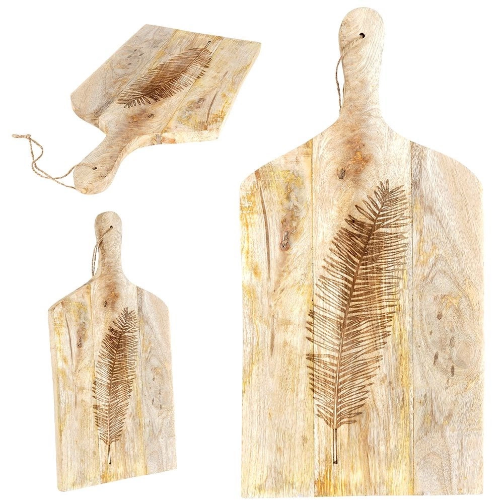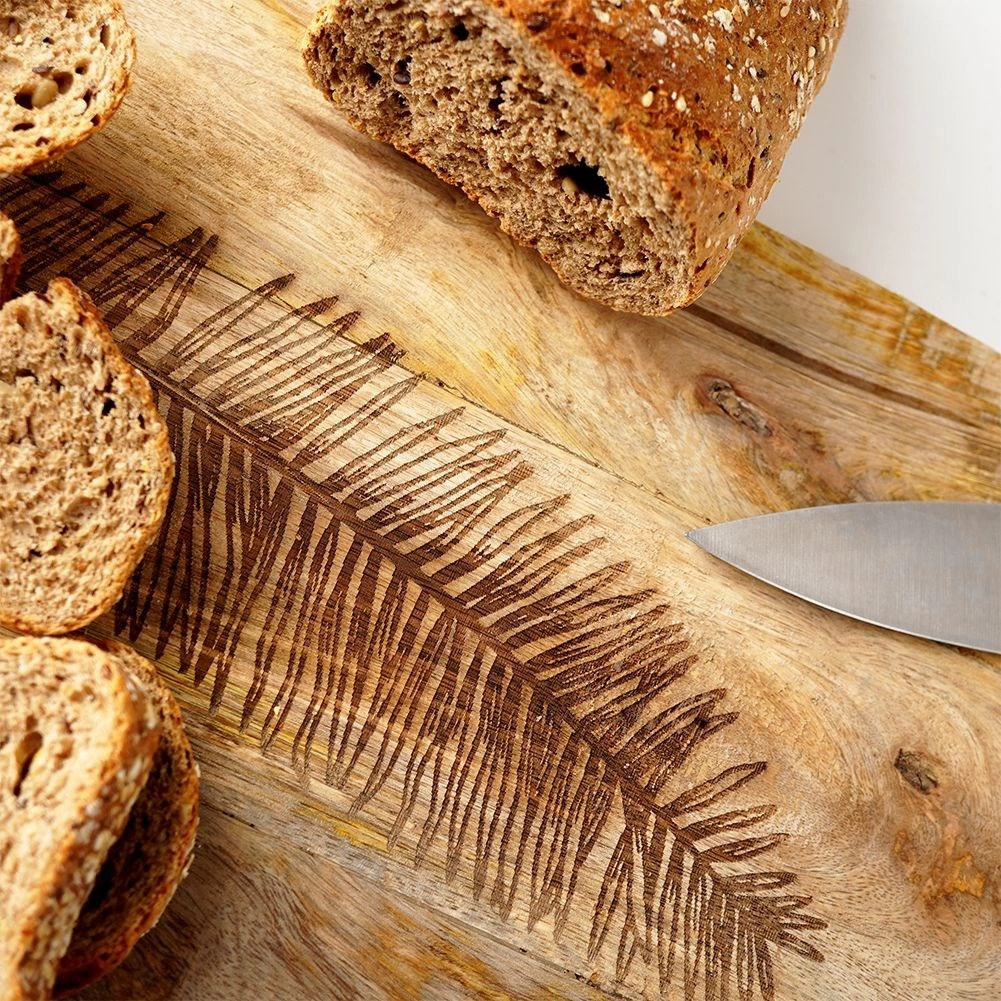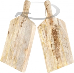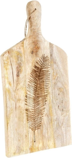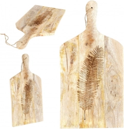 Objevte nadčasové prkénko z mangového dřeva, které v kuchyni zvládne každodenní krájení i efektní servírování. Z jedné strany zdobí plochu elegantní reliéf listu, jenž dodá stolování přírodní šmrnc. Robustní tloušťka 2 cm zajišťuje stabilitu a dlouhou životnost, zatímco jemná kresba dřeva zvýrazní jedinečný vzhled každého kusu.