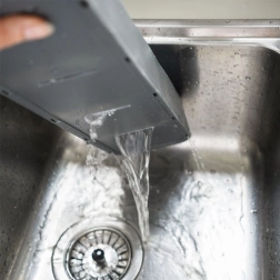 Štíhlý tvar a protiskluzová stabilita umožňují použití v zásuvce nebo jako pořadač na pracovní desce.