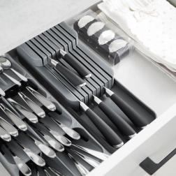 Stupňovitá, vícepatrová konstrukce umožní uložit více nožů na menším prostoru a zachovat pořádek v zásuvce.