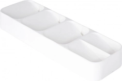 Praktický bílý organizér na příbory do zásuvky o rozměrech 39 × 11,5 × 5,5 cm udrží vaši kuchyň přehlednou a čistou. Nabízí až 5 přihrádek pro lžíce, vidličky, nože i malé lžičky, je odolný, úsporný na prostor a díky svému univerzálnímu rozměru pasuje do většiny zásuvek.