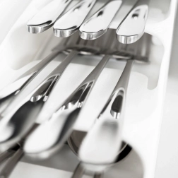 Oddělené sekce pro lžíce, vidličky, nože i malé lžičky udrží zásuvku dokonale organizovanou.