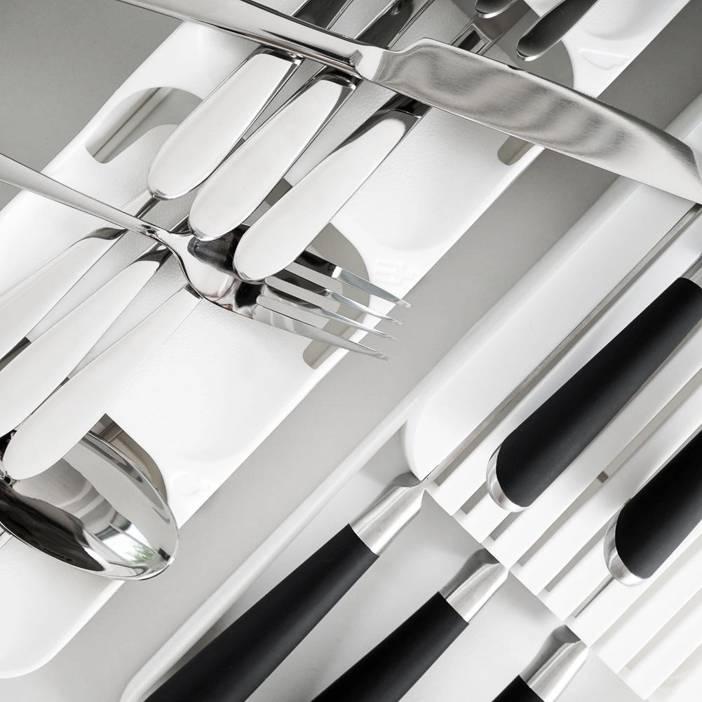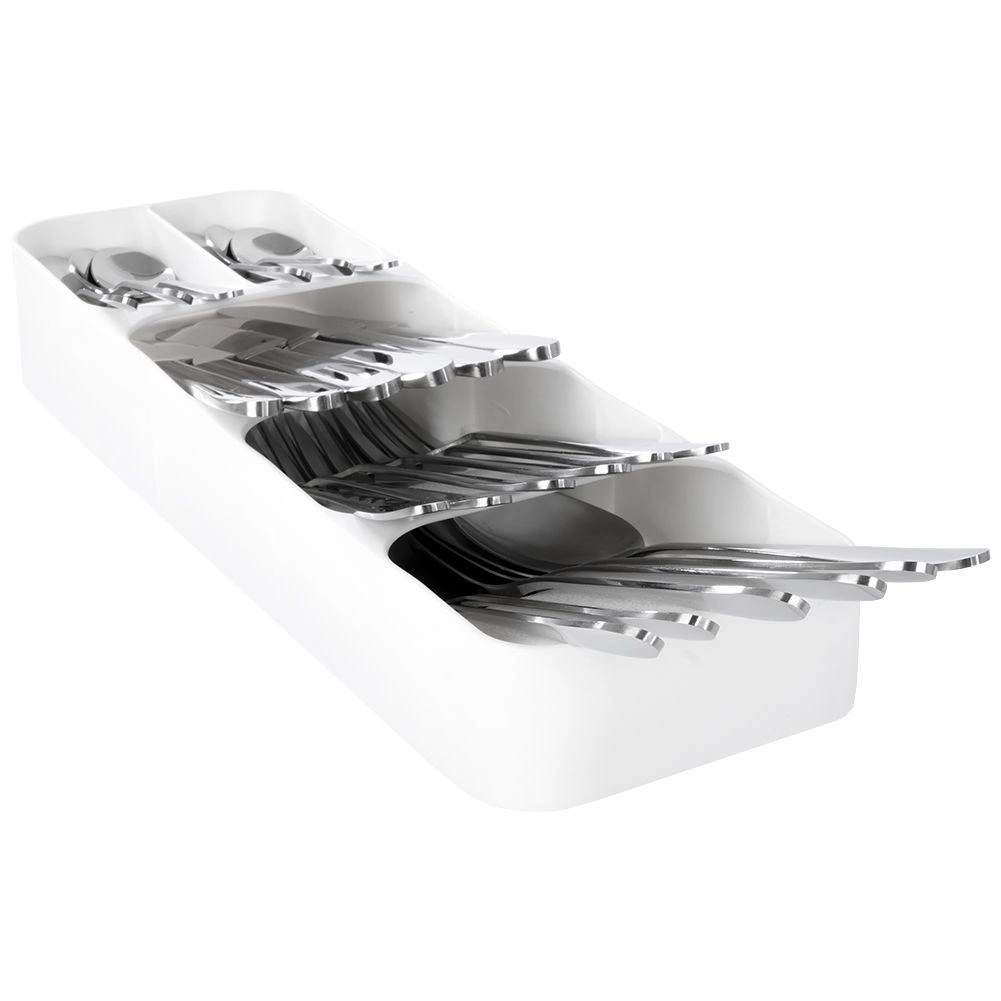 Uspořádejte své příbory chytře a stylově. Tento úzký, ale mimořádně kapacitní zásuvkový pořadač v bílé barvě poskytne každému kusu příboru své místo, zlepší přehlednost a urychlí každodenní servírování. Díky odolnému plastu se snadno čistí a dlouho vydrží.