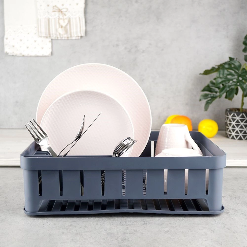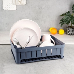 Praktický a stylový odkapávač na nádobí v šedé barvě s rozměry 39,5 × 31 × 12 cm. Nabízí místo pro talíře, hrnky i příbory a chrání kuchyňskou desku před vodou. Díky vyjímatelné odkapávací tácce a možnosti mytí v myčce se snadno udržuje v čistotě. Minimalistický design skvěle ladí s každou kuchyní. Odolné provedení, prostorné uspořádání a snadná údržba dělají z tohoto odkapávače nepostradatelného pomocníka.