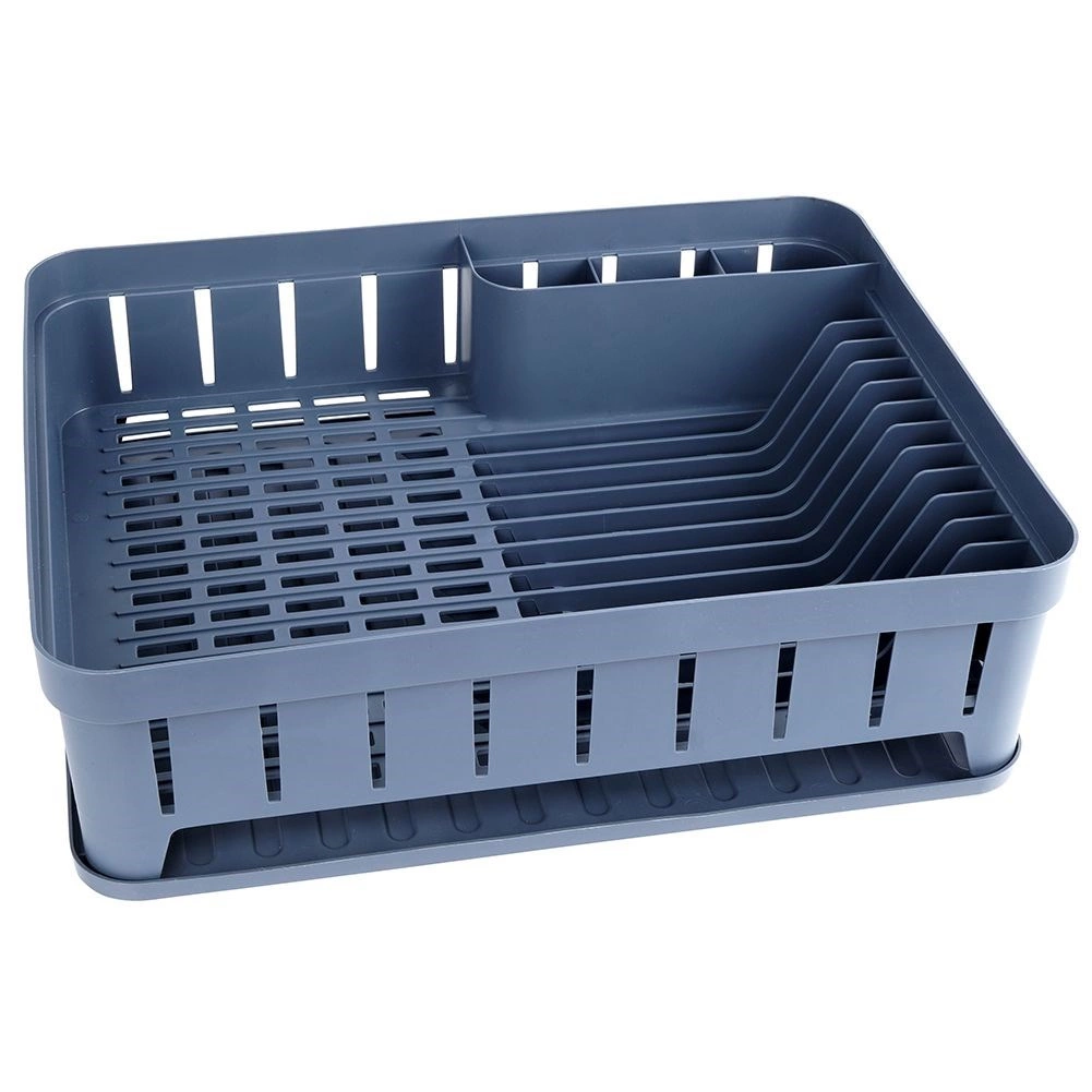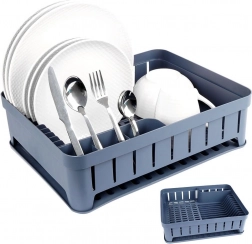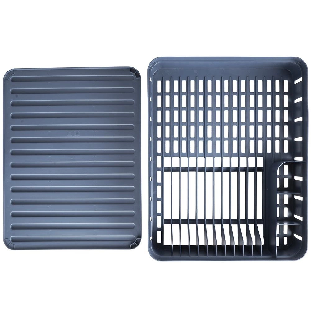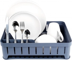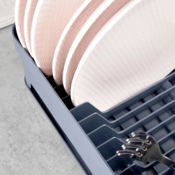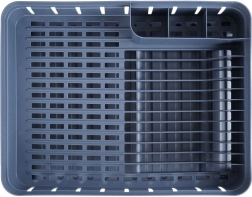Šedý odkapávač na nádobí je navržen pro pohodlné a hygienické sušení umytých talířů, misek, hrnků a příborů. Kapacita až 11 talířů, samostatné místo pro hrnky a třídílný box na příbory udrží vaši kuchyň přehlednou a suchou. Vyjímatelná gumová odkapávací tácenka spolehlivě zachytí přebytečnou vodu.