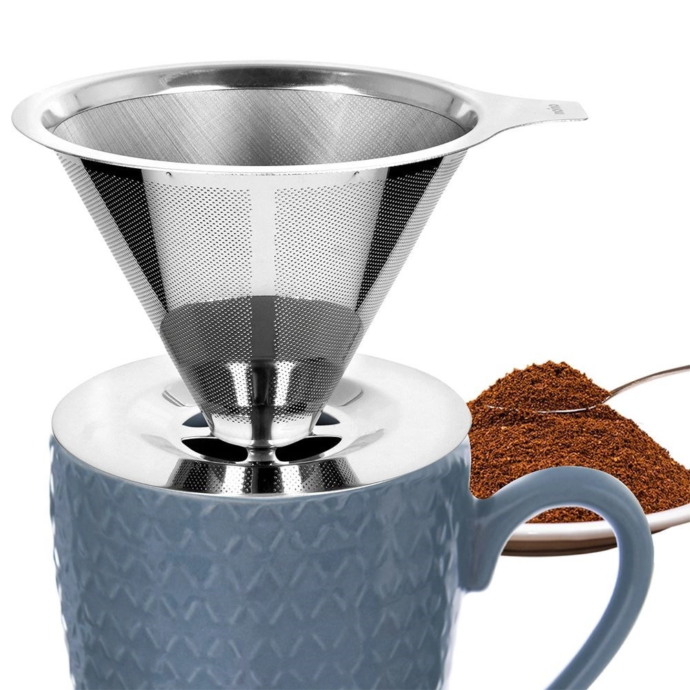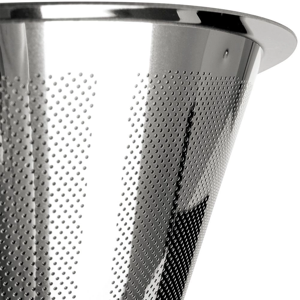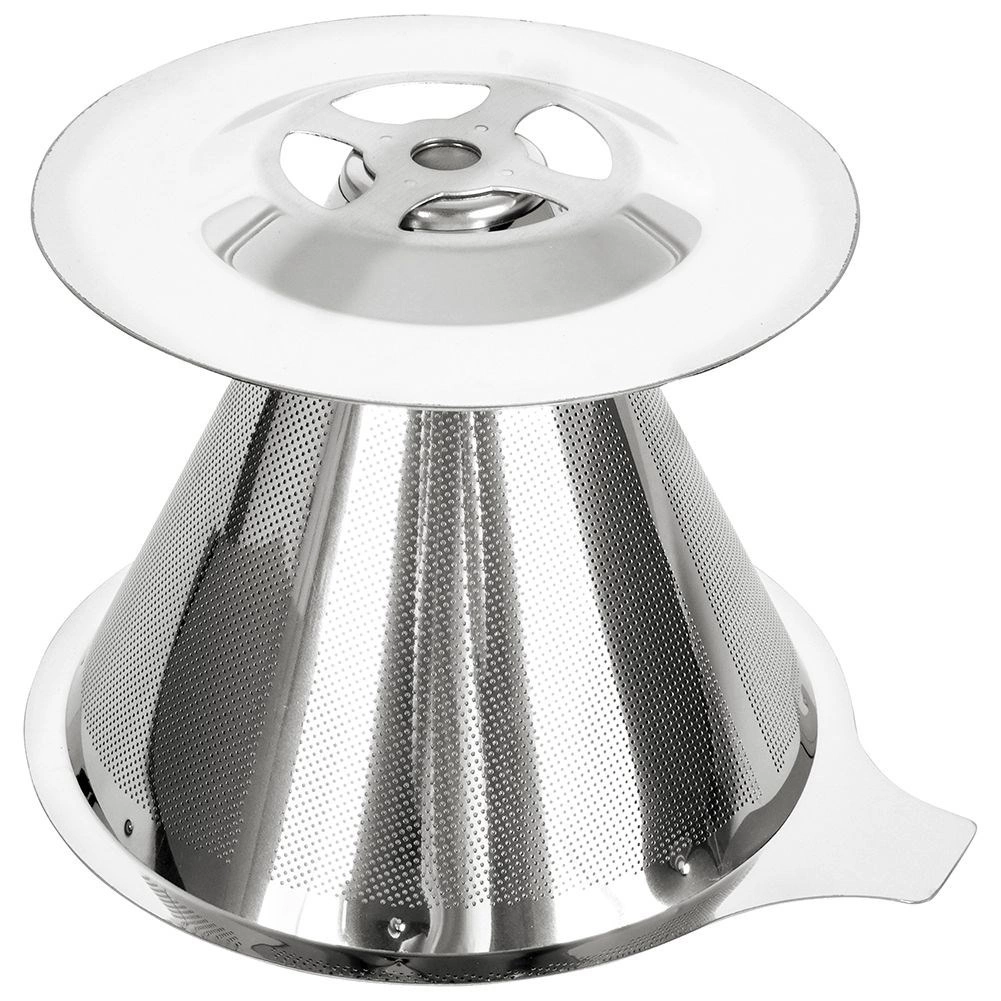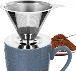 Praktický nerezový filtr na překapávanou kávu pro přípravu voňavé kávy přímo do hrnku. Je znovupoužitelný, bez papírových vložek, z kvalitní nerezové oceli a snadno se myje v myčce. Stabilně sedí na šálcích o průměru 6,5–9,5 cm a nenarušuje aroma připravované kávy.