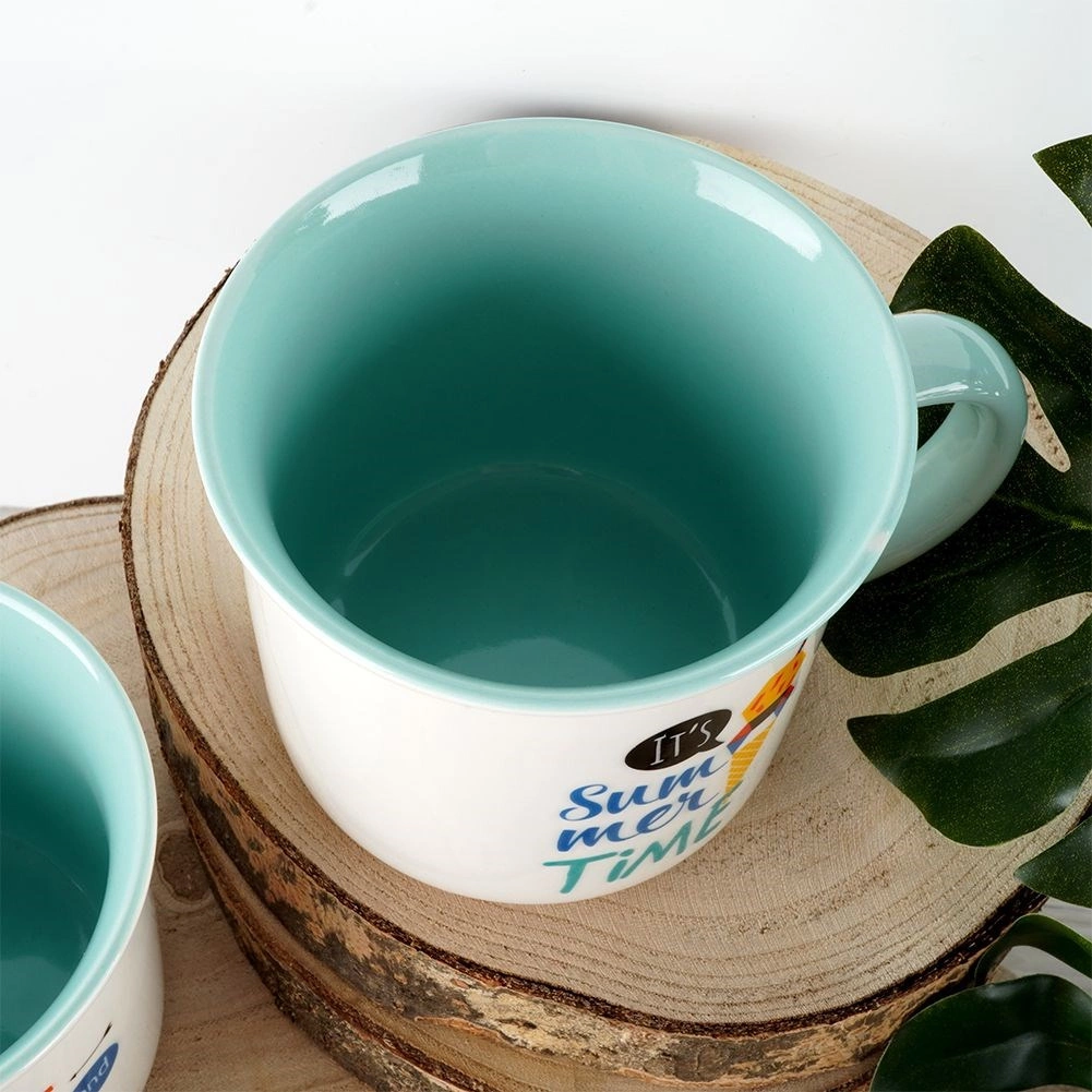 Užijte si oblíbený nápoj v elegantním hrnku z kvalitní porcelány. Kombinace bílé barvy s letním motivem a mátovým vnitřkem dodá stolování svěží nádech. Hrnek se díky ergonomickému uchu pohodlně drží a skvěle se hodí pro každodenní použití.