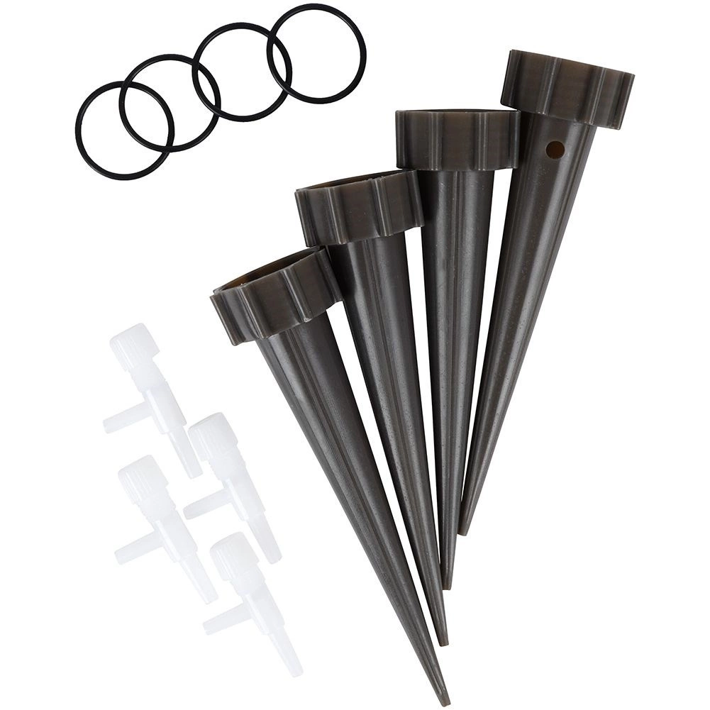 Každý hrot má snadnou instalaci – jednoduše jej zapíchnete do půdy u rostliny a nasadíte obrácenou láhev. Pomocí ventilu si přesně nastavíte průtok podle velikosti květiny a potřeb zálivky. Sada 4 kusů je skvělá pro domácnost, balkon, terasu i zahradu.