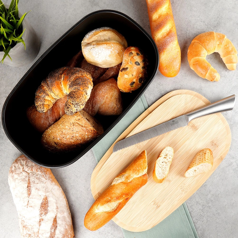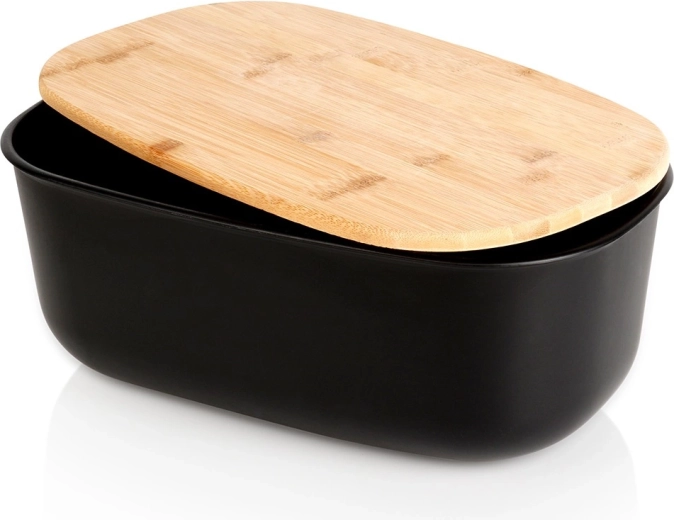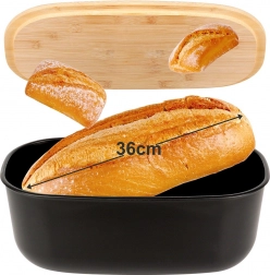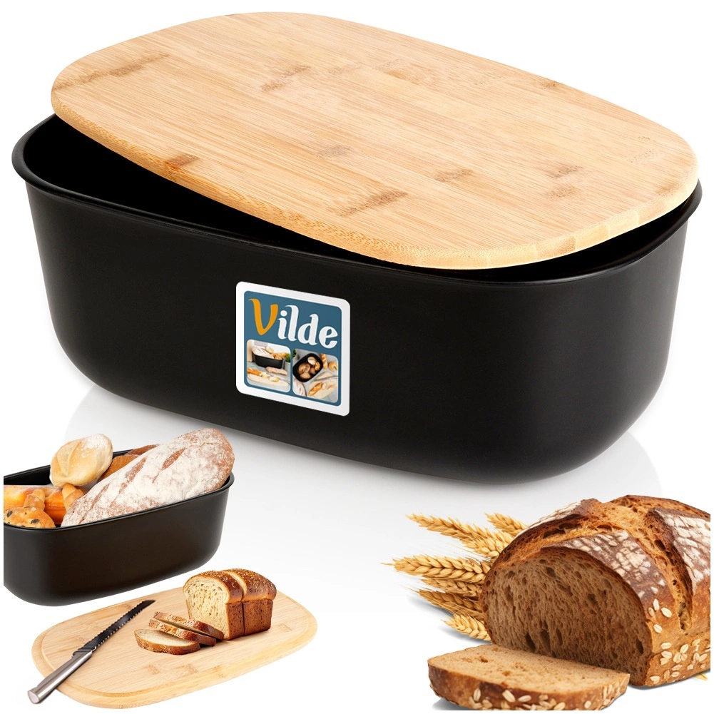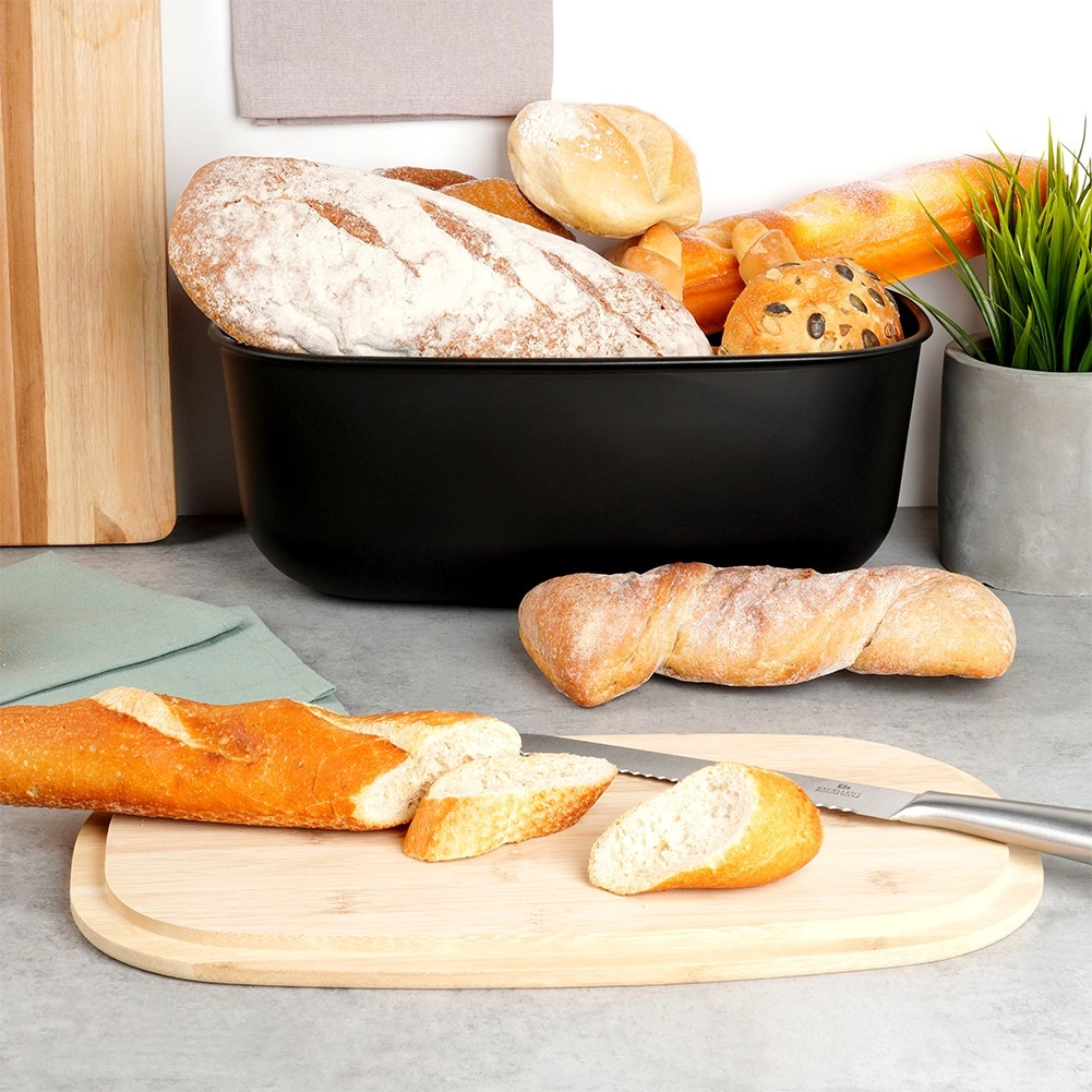Prostorný chlebník s rozměry 39 × 23,5 × 15,5 cm poskytuje dostatek místa pro chléb, rohlíky, housky i sladké pečivo. Oválný tvar a matně černé provedení se skvěle hodí do moderní i klasické kuchyně, zatímco bambusové víko dodává přírodní akcent.