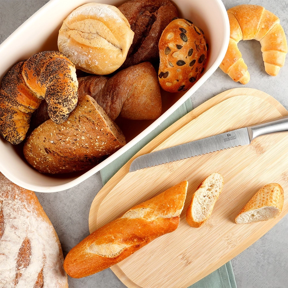 Oválná nádoba omezuje přístup vzduchu a pomáhá udržet chléb i pečivo déle vláčné a chutné.