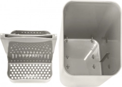 Perforované dno a vyjímatelná vložka zajišťují, že voda odtéká dolů a příbory nezůstávají stát ve vlhku. Kuchyňská deska zůstane čistá a suchá.
