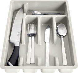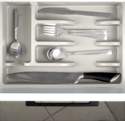 Tři sekce na příbory, samostatná přihrádka na lžičky a dlouhá část na kuchyňské náčiní udrží vše přehledně na svém místě.