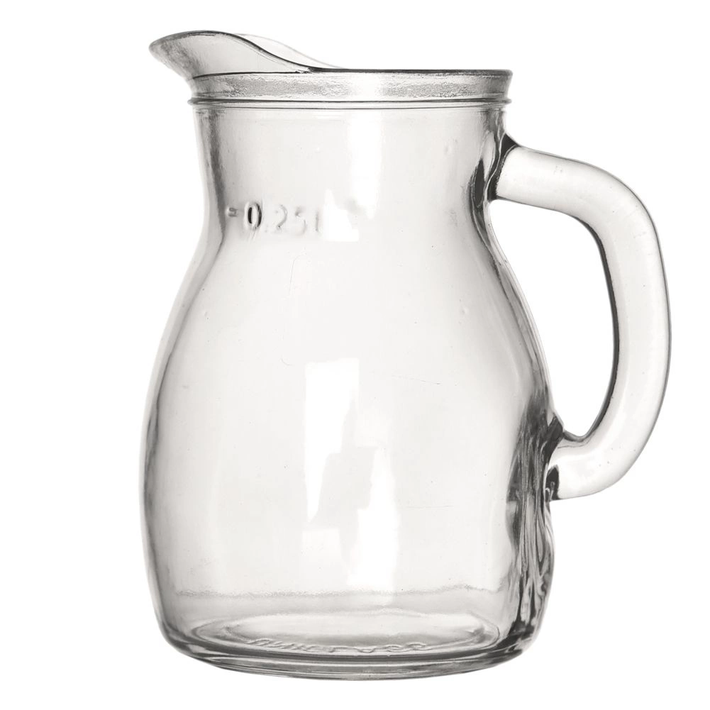 Univerzální skleněný džbánek se skvěle hodí do kuchyně i gastronomických provozů. Díky čirému provedení elegantně zapadne k jakémukoli stolování a umožní snadno kontrolovat množství nápoje. Praktické zvýraznění 0,25 l usnadní přesné servírování.