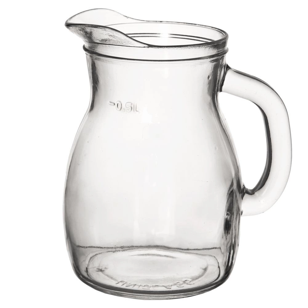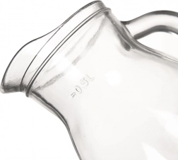 Elegantní skleněný džbánek o objemu 500 ml (celková kapacita 600 ml) s praktickým výlevkou a pohodlným uchem. Vyroben z odolného čirého skla, vhodný do myčky i mikrovlnné trouby. Ideální pro vodu, džus, víno, mléko i omáčky a skvěle doplní každou tabuli.