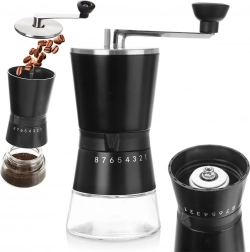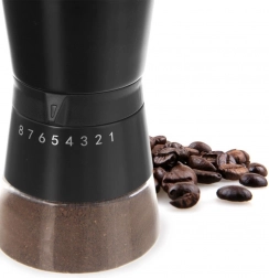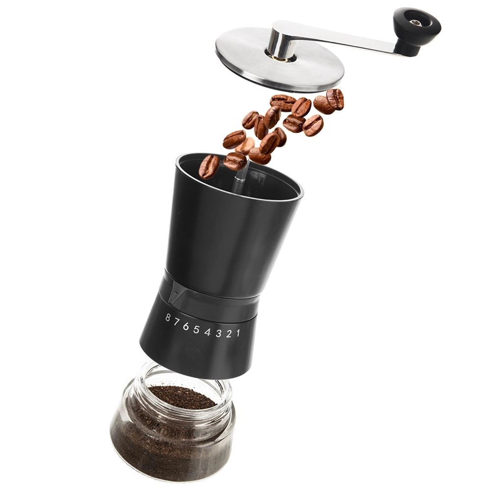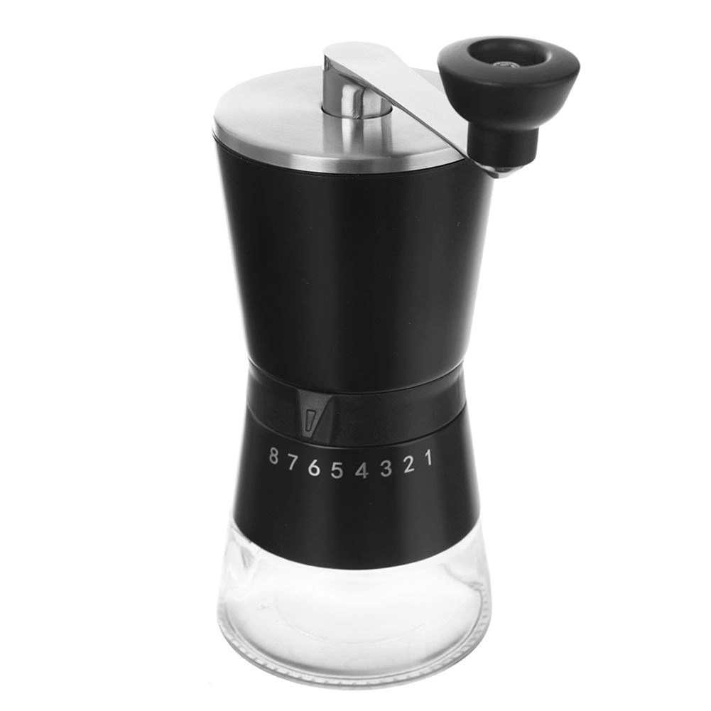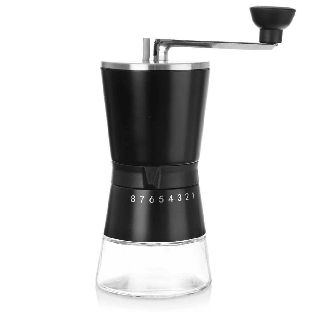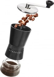 Tělo z nerezové oceli s matnou, protiskluzovou povrchovou úpravou je odolné a pohodlné do ruky. Spodní průhledná skleněná nádobka umožní kontrolovat množství namleté kávy. Klička z kovu s pohodlným úchopem zajišťuje rovnoměrné mletí bez námahy.