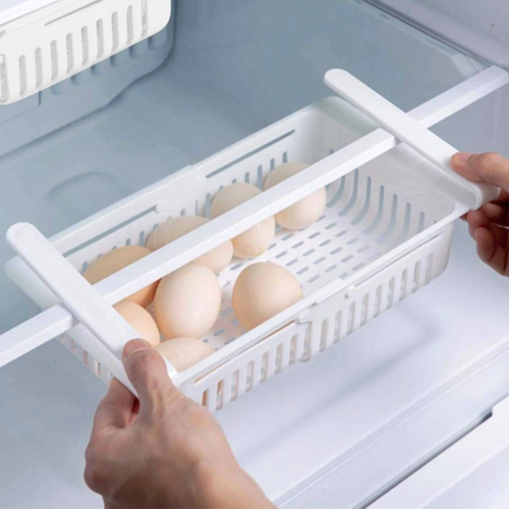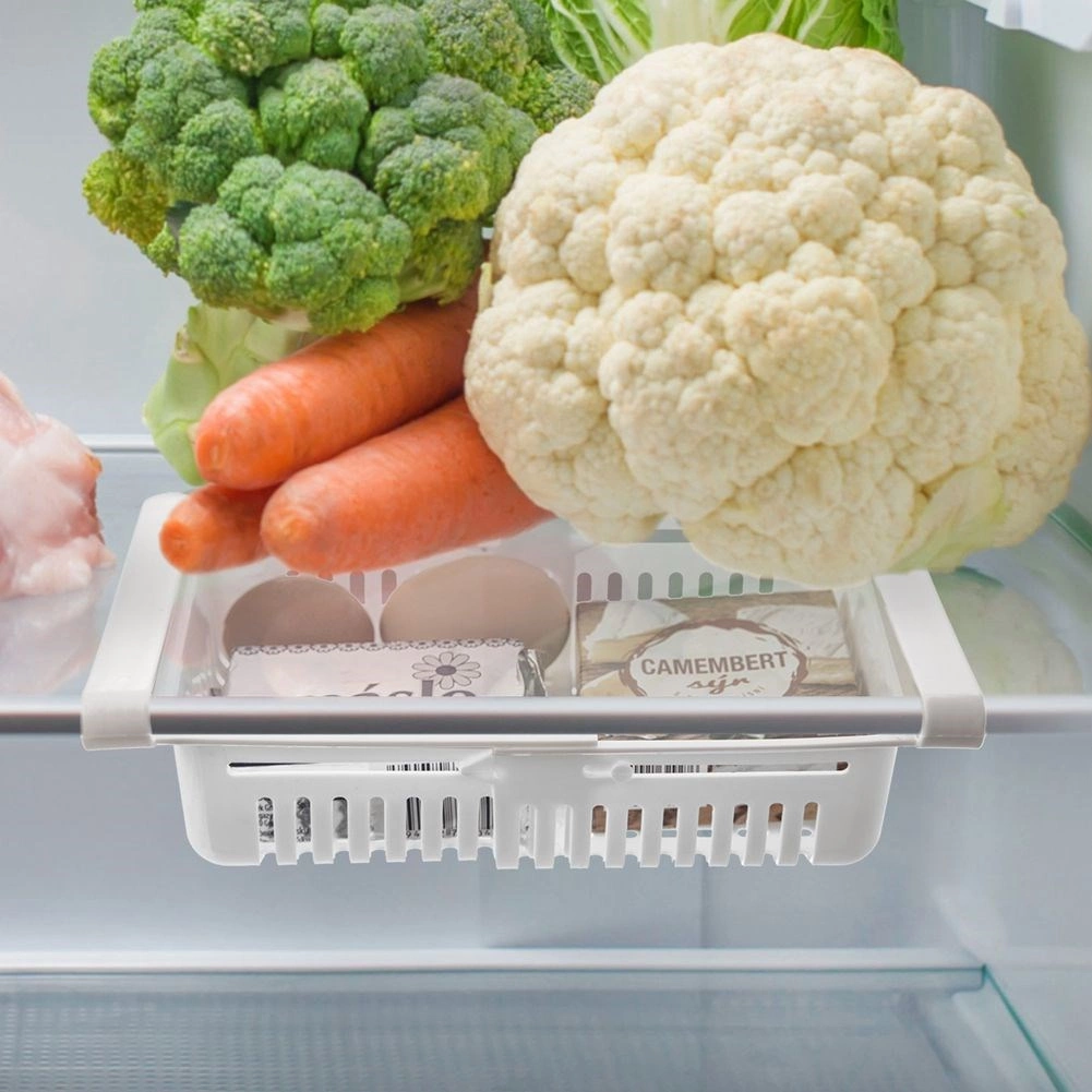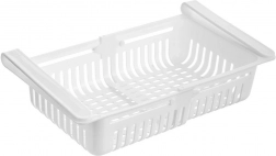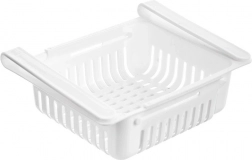 Praktický podvěsný košík do lednice rozšiřitelný z 21 až na 28,7 cm vám pomůže chytře využít prostor pod policí. Je lehký, odolný a snadno se montuje bez nářadí. Díky větrané konstrukci zůstávají potraviny déle čerstvé a vše máte přehledně po ruce. Roztažitelná délka, snadná instalace pod polici, pevné provedení a větrací otvory pro lepší cirkulaci vzduchu.