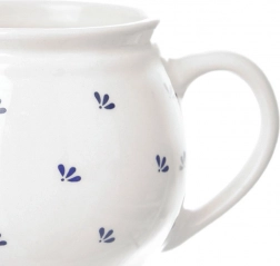 Elegantní keramický hrnek o objemu 190 ml v bílé barvě s jemným modrým dekorem je ideální pro každodenní pití čaje, kávy či kakaa. Díky pohodlnému uchu se dobře drží, je vhodný do myčky i mikrovlnné trouby a svým minimalistickým designem krásně doplní každou tabuli.