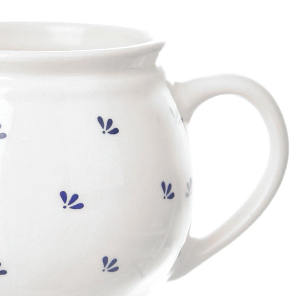 Stylový hrnek z kvalitní keramiky v modrobílém provedení skvěle poslouží pro horké i studené nápoje. Kompaktní rozměry (průměr 8 cm, výška 6,5 cm) zaručí pohodlné každodenní používání doma i v kanceláři. Jemné tečkované květinové zdobení dodává hrnku nadčasový vzhled.