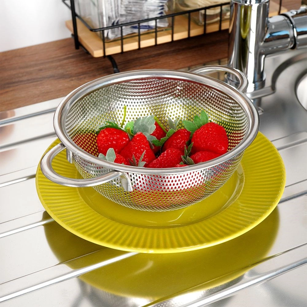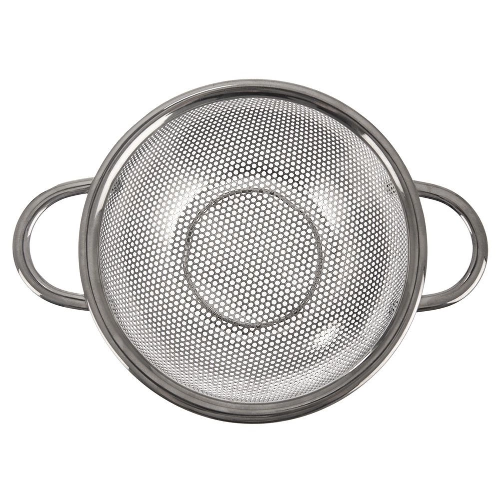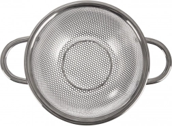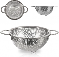 Univerzální nerezový cedník ve tvaru misky s průměrem 16,5 cm a rozšířeným okrajem 22,5 cm je ideální na mytí ovoce a zeleniny, scezení těstovin i rýže. Díky dvěma pohodlným úchytům a stabilnímu podstavci se s ním snadno manipuluje, je odolný a vhodný do myčky nádobí.