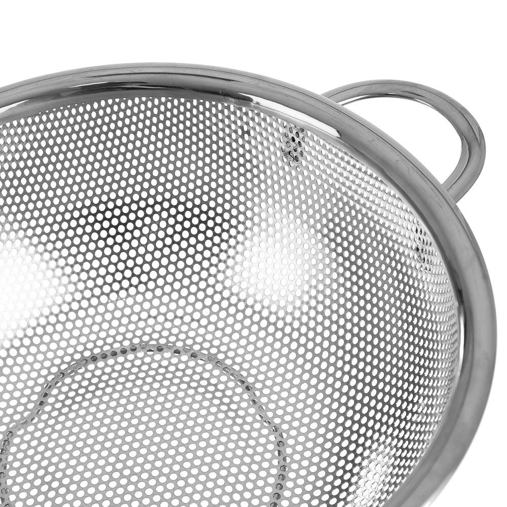 Praktický cedník z kvalitní nerezové oceli v elegantním stříbrném provedení se stane nepostradatelným pomocníkem v každé kuchyni. Jemně perforovaná mísa umožňuje rychlé a rovnoměrné odkapávání vody při oplachování ovoce a zeleniny nebo při cezení těstovin, knedlíků a rýže. Dva boční úchyty zajišťují bezpečný úchop a snadné přenášení.