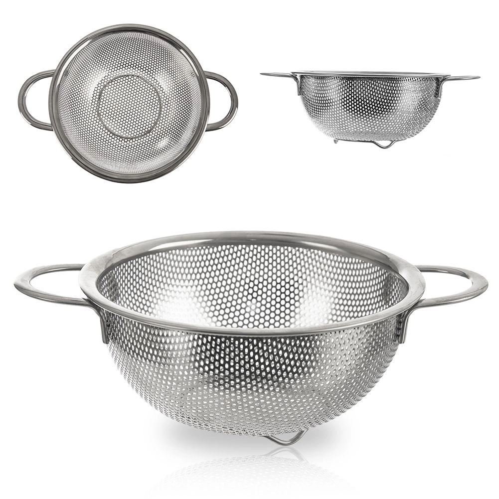 Husté otvory po celém plášti zajišťují efektivní odvod vody při mytí ovoce či cezení těstovin a zeleniny.