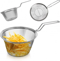 Praktický kovový košík pro hluboké smažení, cezení těstovin a zeleniny i jako vložka do hrnce pro napařování. Má jemné nerezové pletivo, pevný rám a dlouhou rukojeť pro bezpečnou manipulaci. Lze mýt v myčce.