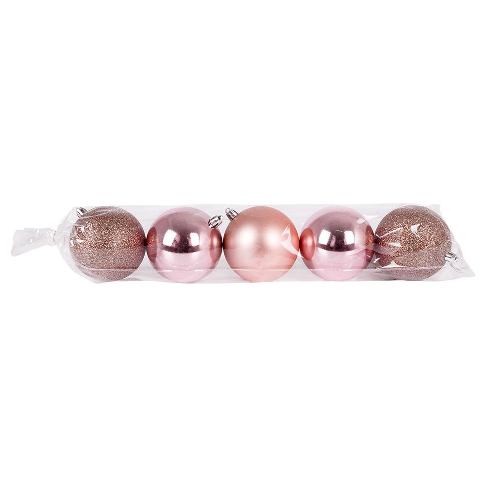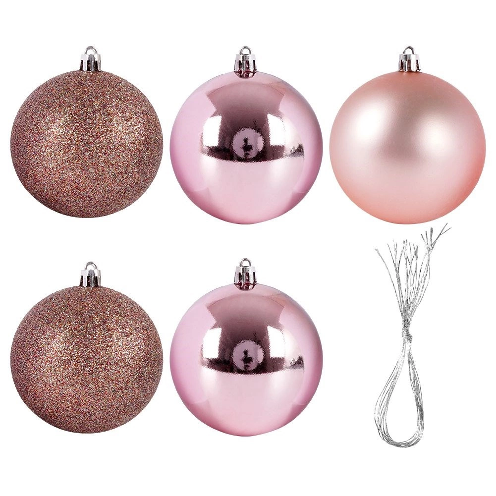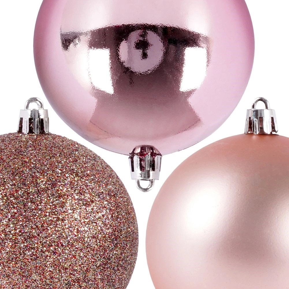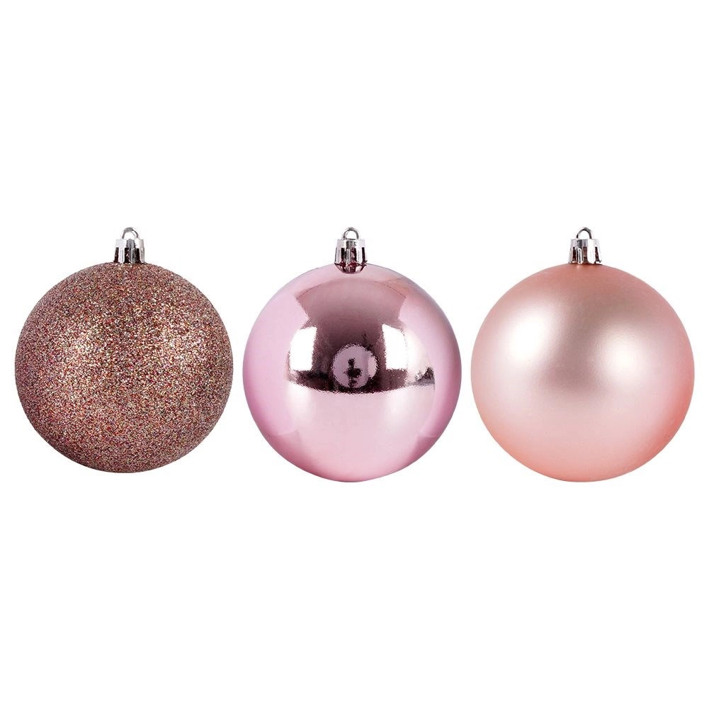 Elegantní sada růžových vánočních baněk o průměru 8 cm v povrchových úpravách lesk, brokát a mat. Baňky jsou z odolného plastu, tedy neroztříští se jako skleněné, a jsou ideální do domácností s dětmi a mazlíčky. Součástí jsou závěsné šňůrky pro snadné zdobení stromku a svátečních aranžmá.