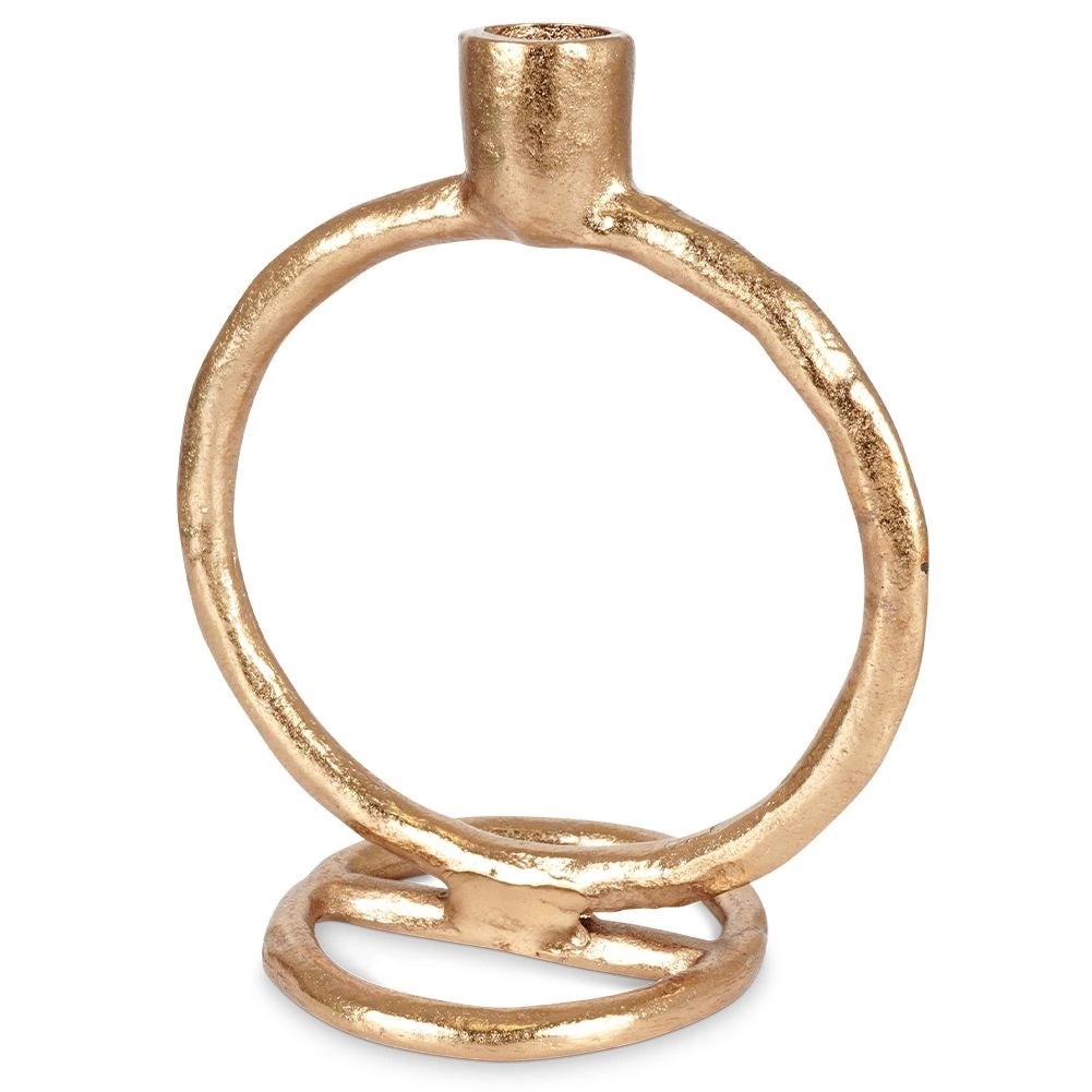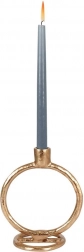 Elegantní svícen na jednu dlouhou svíčku je vyroben z kvalitního hliníku ve zlaté barvě. Díky pevnému zpracování a kulaté stabilní základně bezpečně podrží svíčku a současně se stane výrazným designovým prvkem vašeho domova.