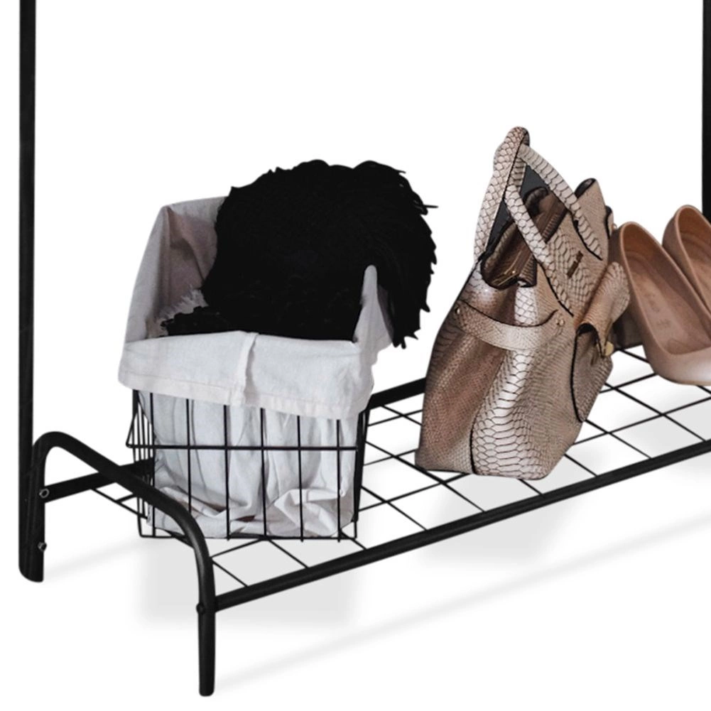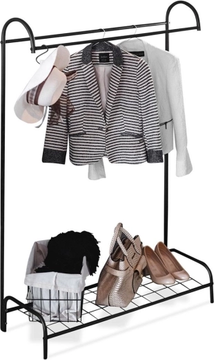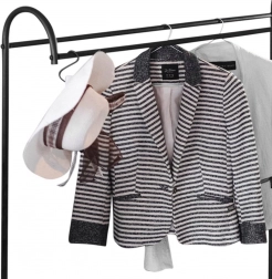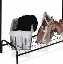 Stojanový věšák v industriálním stylu LOFT kombinuje pevný kovový rám s praktickou policí pro obuv a doplňky. Poskytuje dostatek prostoru pro kabáty, bundy i každodenní oblečení, zároveň udržuje kabelky, batohy a boty elegantně uspořádané. Skvěle se hodí do předsíně, ložnice, šatny i kanceláře.