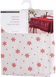 Elegantní vánoční ubrus s motivem červených sněhových vloček na béžovém podkladu ozdobí váš stůl během svátků. Je odolný, příjemný na dotek a díky směsi 80 % polyesteru a 20 % bavlny dobře drží tvar. Obdélníkový formát 180 × 130 cm se hodí na většinu jídelních stolů a je snadno udržovatelný – lze prát a žehlit.