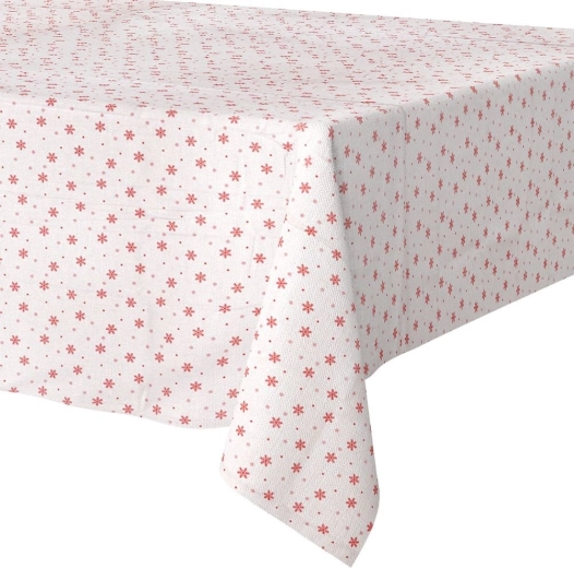 Vytvořte si doma kouzelnou sváteční atmosféru. Tento vánoční ubrus s jemným potiskem červených vloček dodá stolování slavnostní nádech a zároveň spolehlivě ochrání desku stolu. Kvalitní zpracování a pečlivě začištěné lemy zaručují dlouhou životnost i při častém používání.