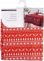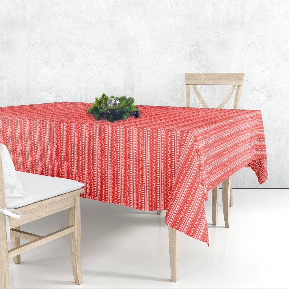 Vneste do svého stolu sváteční atmosféru s červeným ubrusem 130 × 180 cm s nordickým motivem. Kombinace polyesteru a bavlny zajišťuje odolnost, snadnou údržbu a dlouhou životnost. Díky vánočnímu vzoru s jeleny, stromky a vločkami je ideální na zimní a sváteční stolování.
