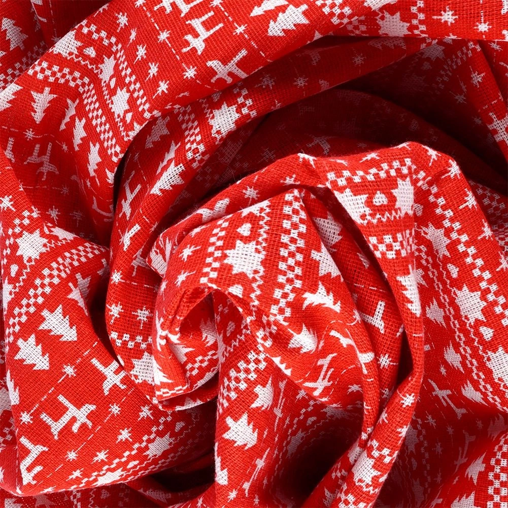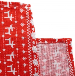Červený podklad s bílými nordickými motivy (jeleni, stromky, vločky) okamžitě promění váš stůl v útulné sváteční místo.