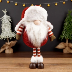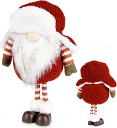 Roztomilá vánoční figurka skřítka o výšce 39 cm dodá vašemu domovu útulnou sváteční atmosféru. Má měkké textilní tělo, pletený červený outfit, bohatý bílý vous a stabilní samostatně stojící základnu. Skvěle se hodí na stůl, komodu i k vánočnímu stromku a je i výborným tipem na dárek.
