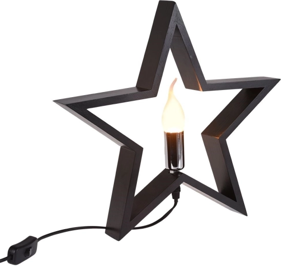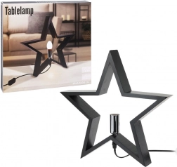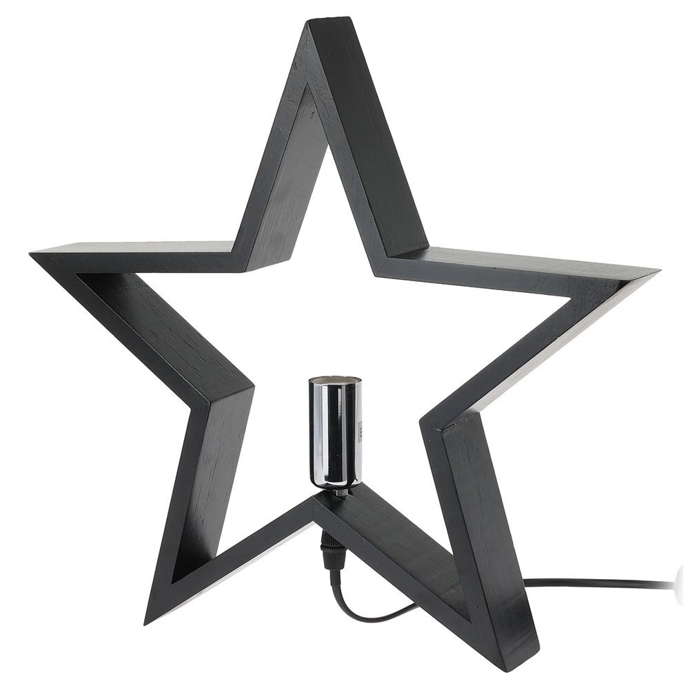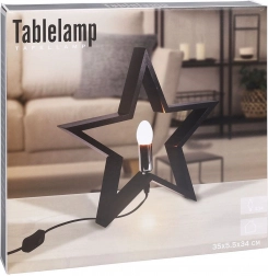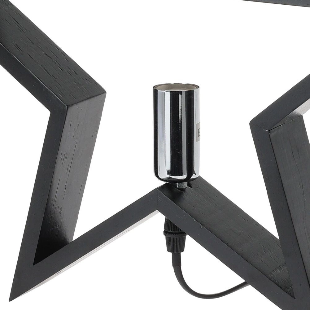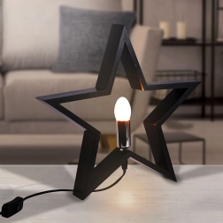 Stylová stolní lampa ve tvaru hvězdy v černé barvě z kvalitního dřeva rozzáří každý interiér. Nabízí efektní design, síťové napájení s vypínačem, patice E14 (žárovka není součástí) a 1,5m napájecí kabel. Skvěle se hodí do obýváku, ložnice i pracovny.