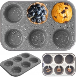 Objevte spolehlivou formu na muffiny GRANDE, která umožní upéct najednou 6 kusů opravdu velkých muffinů. Díky nepřilnavé granitové vrstvě se těsto nepřipéká a pečivo snadno vyjmete bez trhání. Robustní uhlíková ocel rozvádí teplo rovnoměrně pro perfektně propečené těsto.